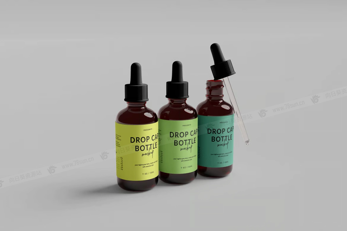 化妆品精华液滴管瓶包装纸盒品牌VI效果图展示智能贴图psd设计样机,非常适合展示化妆品、护肤品或液体产品,具有光泽饰面和金属瓶盖,外观高档。下沉帽非常适合需要精确分配的产品,例如精华液或维生素,可确保准确涂抹。