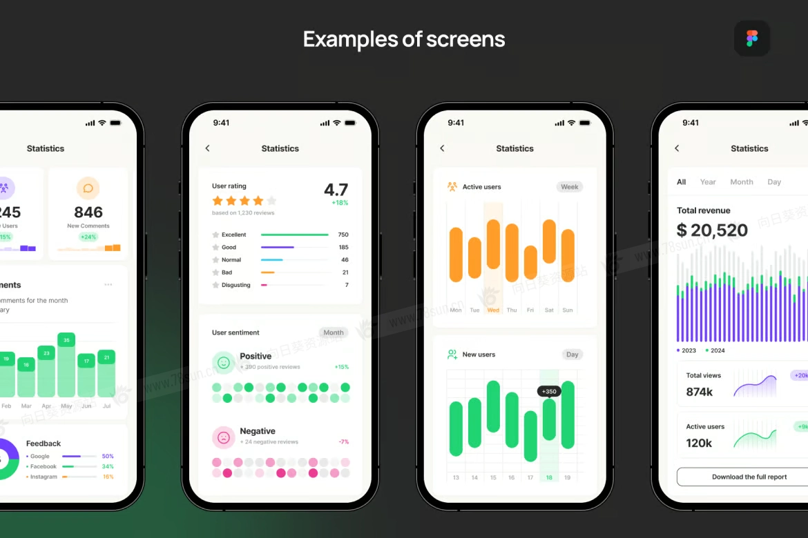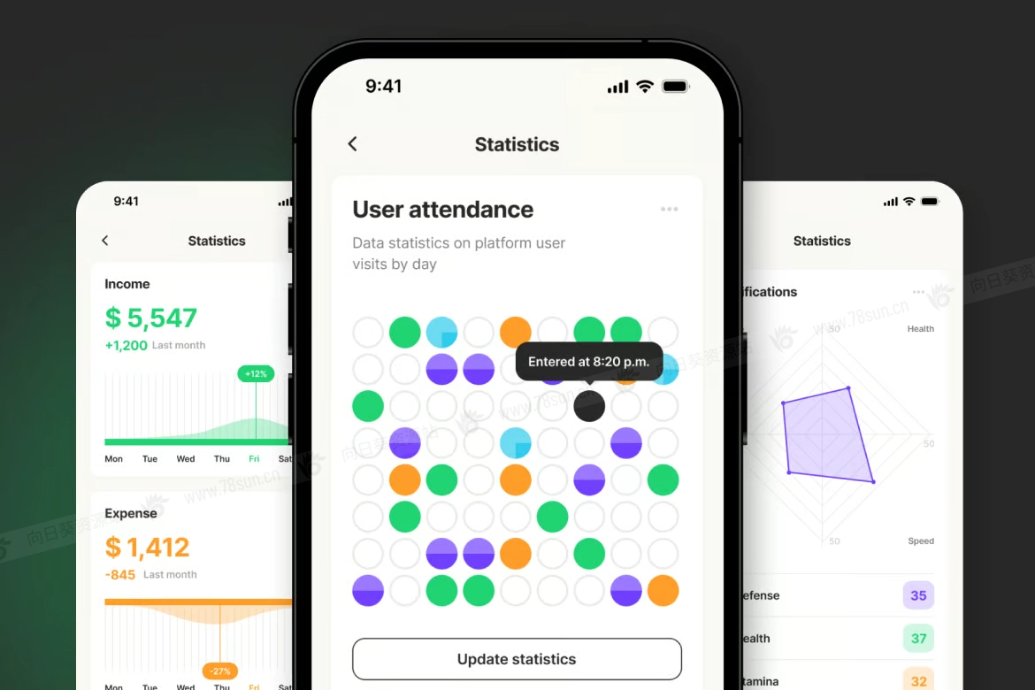 dashboard信息图表统计app ui界面设计fig源文件模板。轻松调整布局模板以适应任何条件和样式。