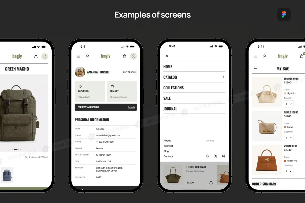 时尚服装配饰包包电子商务app ui界面设计fig源文件模板。如果您想为他们制作自己的手提包或配饰商店,那就太好了。轻松定制将帮助您快速集成文本、图像和品牌材料。