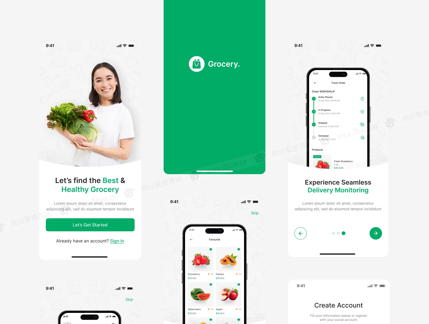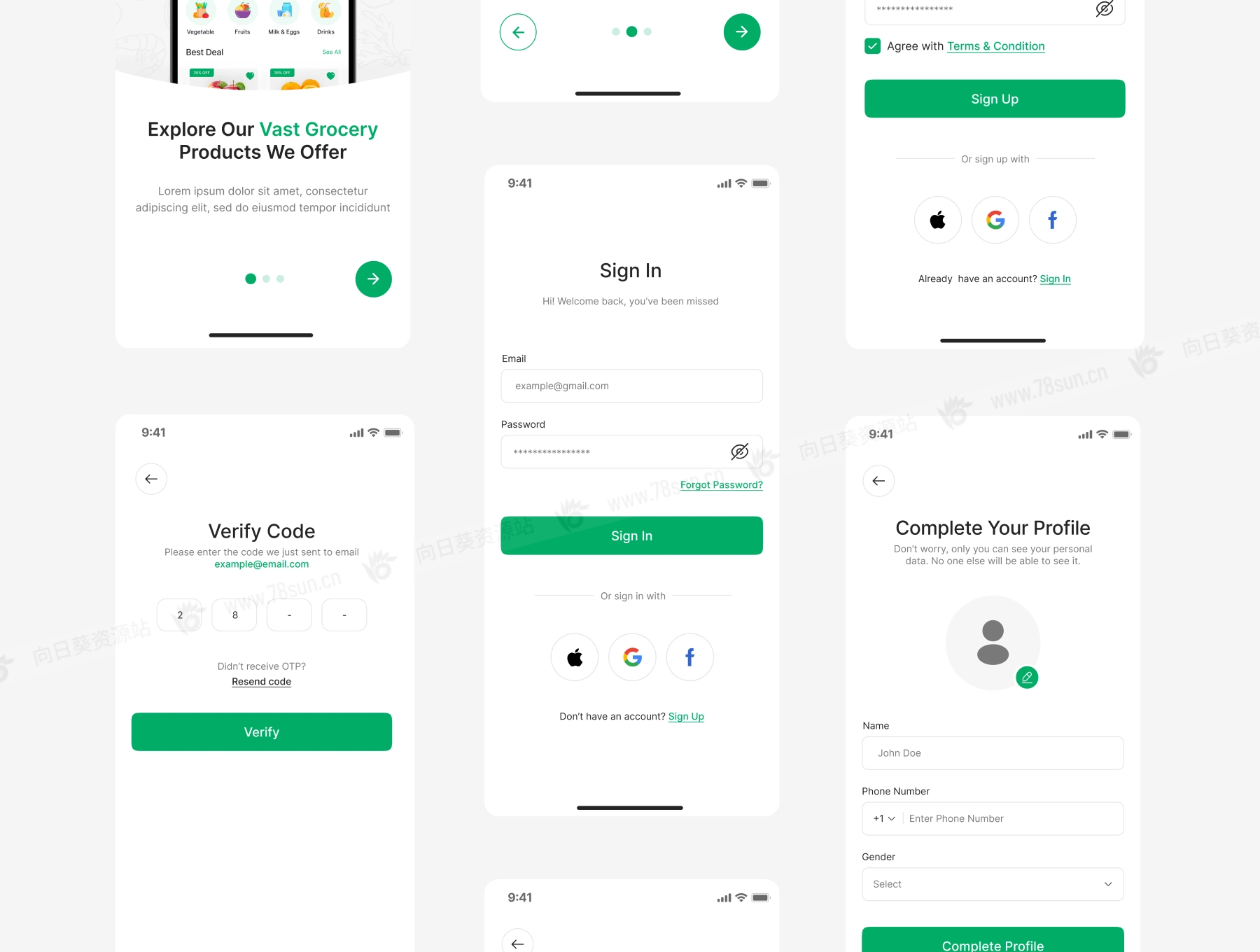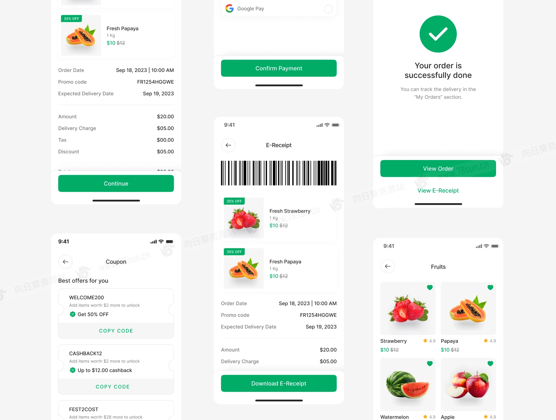 蔬果日用品杂货店在线超市app ui界面设计fig源文件模板,55+ 屏幕 Figma UI 套件