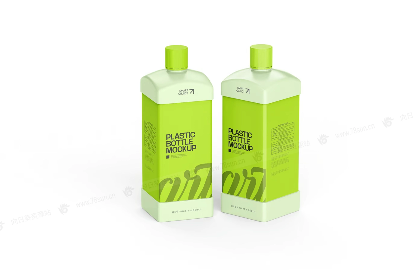 方形塑料瓶品牌VI效果图展示智能贴图psd设计样机,非常适合展示果汁、奶昔、苏打水、蛋白质奶昔和矿泉水。高质量的 PSD 文件具有一个玻璃瓶或塑料瓶,带有可编辑的瓶盖,非常适合用于果汁标签或清洁产品品牌,如洗涤剂和消毒液。这款模型专为专业人士设计,让您可以灵活地以干净、逼真的风格展示从冰沙到有机饮料的所有内容。