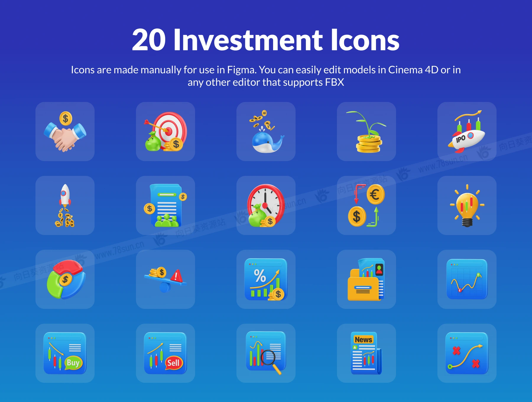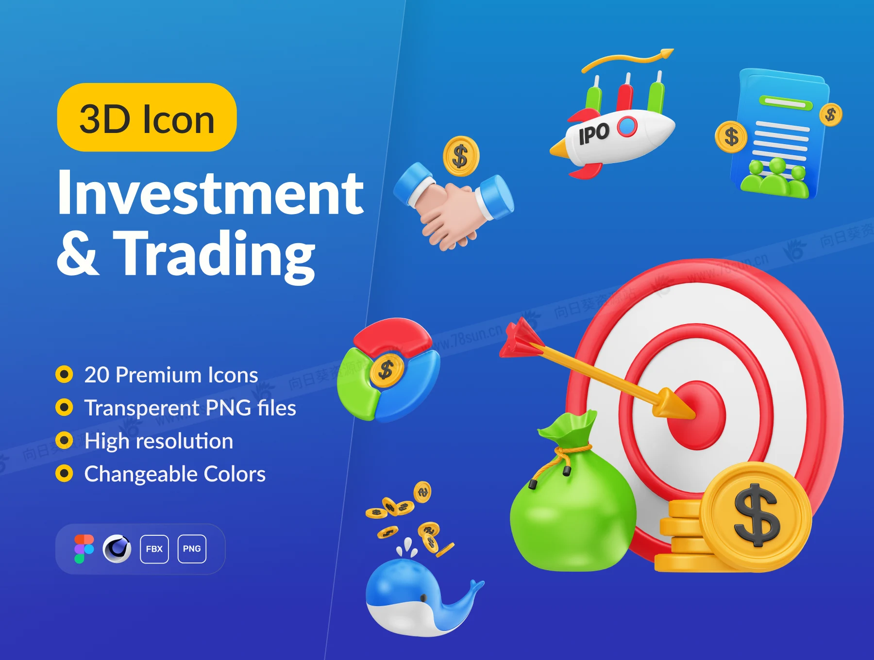3D立体金融投资交易打靶火箭icon图标fig c4d设计模板,完美适用于与金融、交易和投资相关的任何项目。非常适合您的登录页面、应用程序、演示文稿和其他卓越的项目。该套装包括 20 个独特的图标,以一致的风格制作。您可以轻松更改颜色以匹配您的品牌或项目要求。