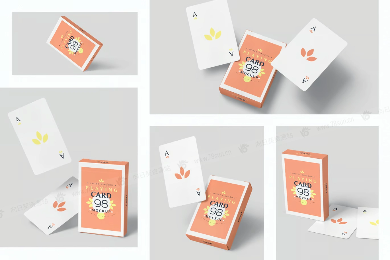 扑克牌包装纸盒VI效果图展示智能贴图psd设计样机,易于编辑扑克牌盒模型,带有一些扑克牌来展示您的扑克牌包装盒设计。这些卡片和包装盒模型具有单独的设计选项,您可以使用智能对象选项添加您的设计。您还可以使用其图层控制这些模型的光效和阴影。此外,这些模型的背景也是可替换的。