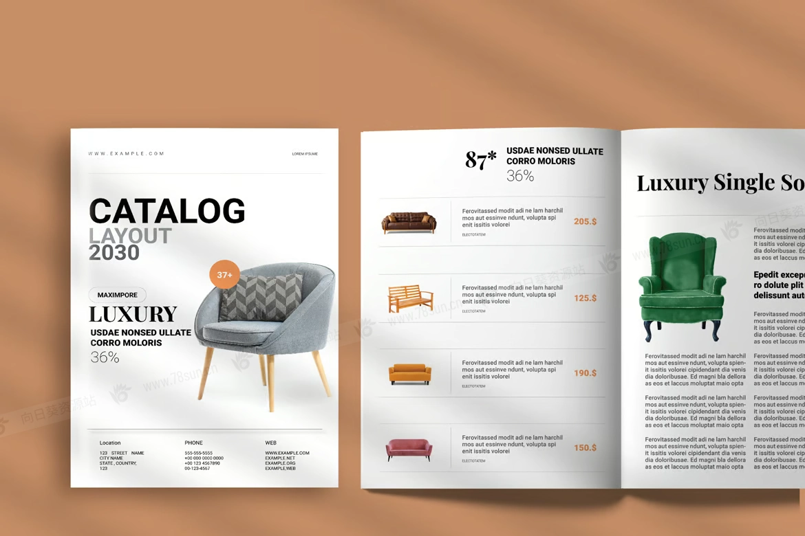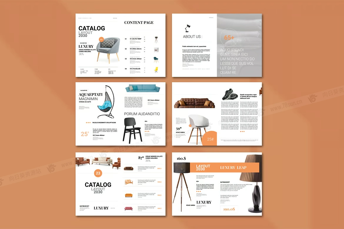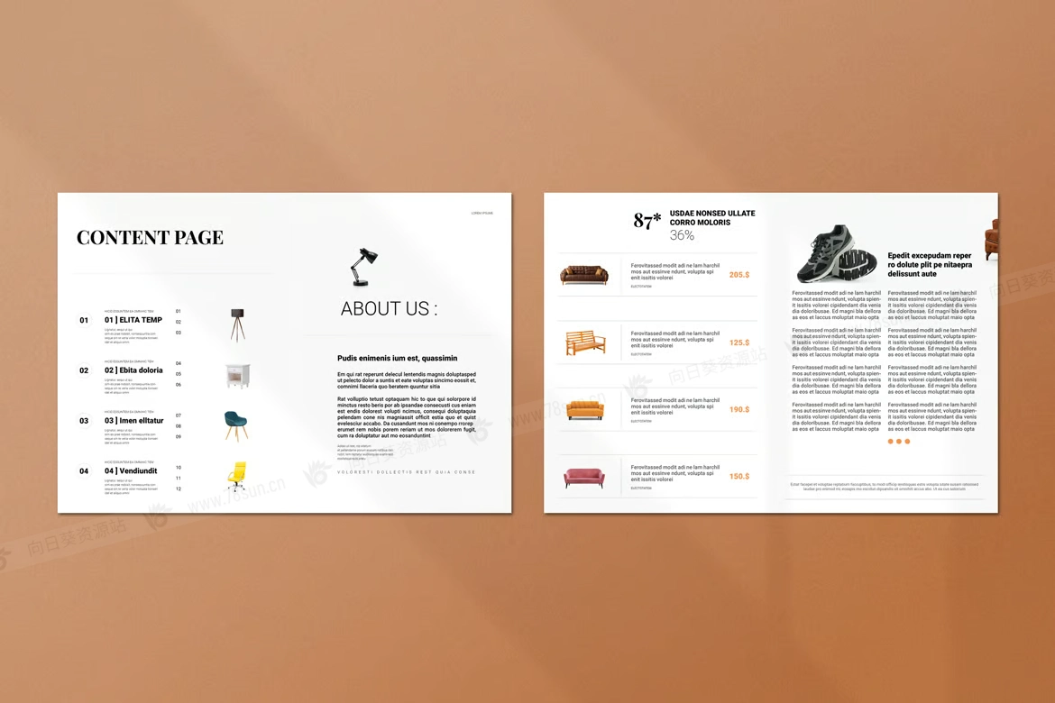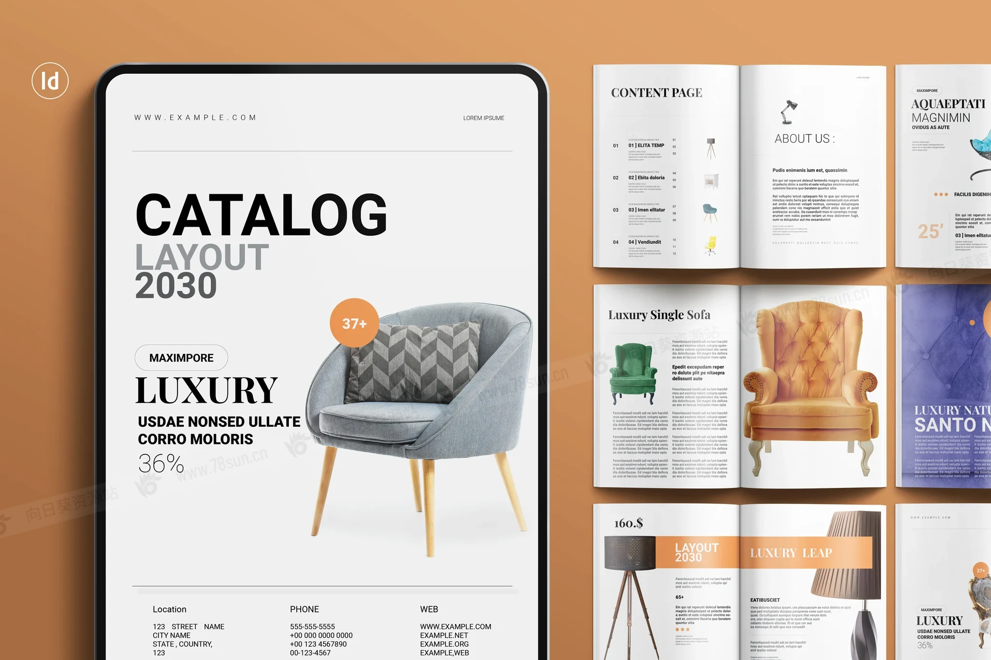 室内设计家居家具目录小册子杂志宣传册画册indd设计模板,添加您的徽标和图像并编辑您的品牌颜色和排版,