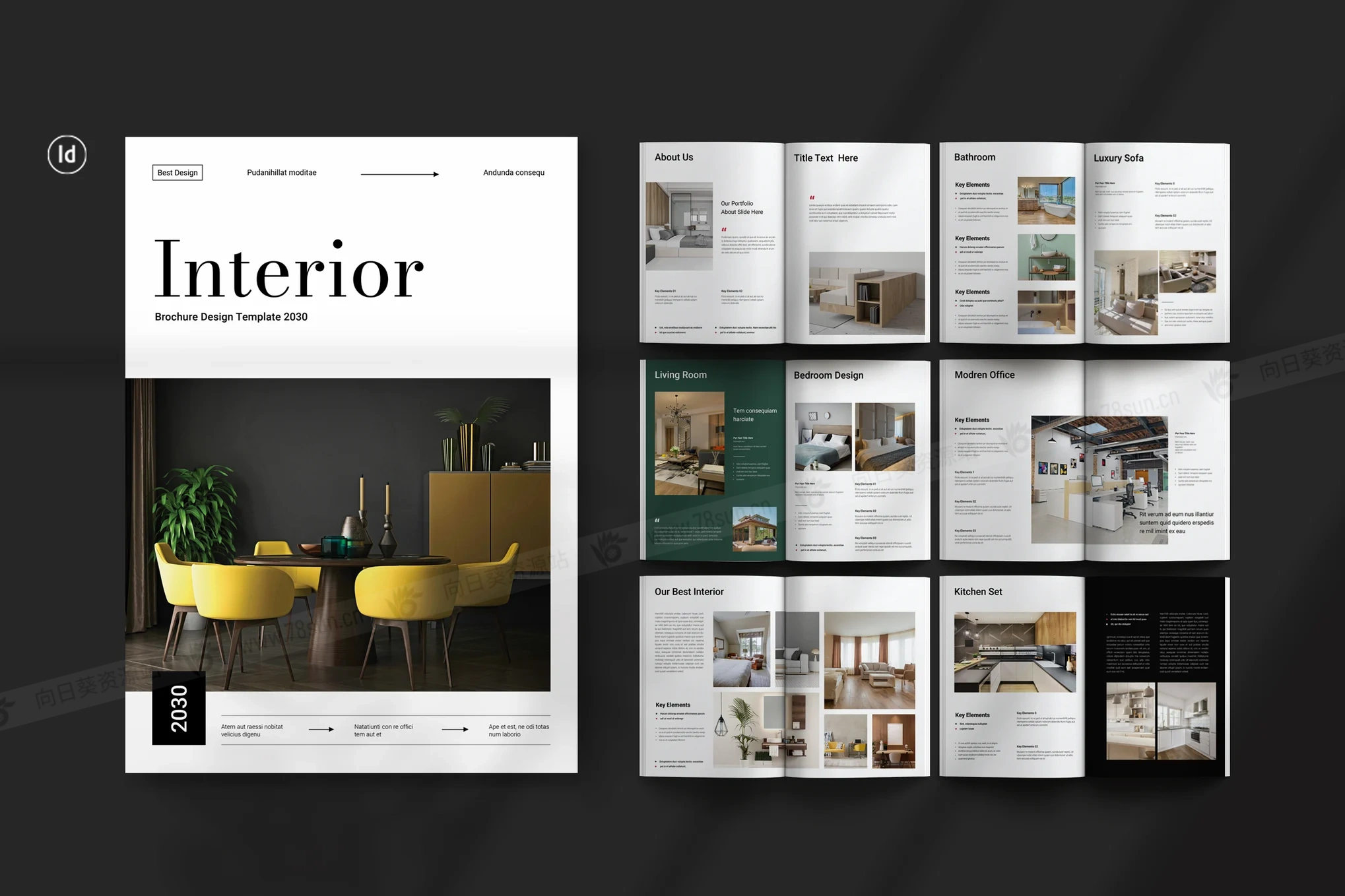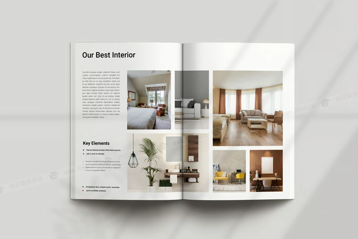 室内设计家居家具目录小册子杂志宣传册画册indd设计模板,添加您的徽标和图像并编辑您的品牌颜色和排版,易于用您自己的排版和品牌颜色替换。
