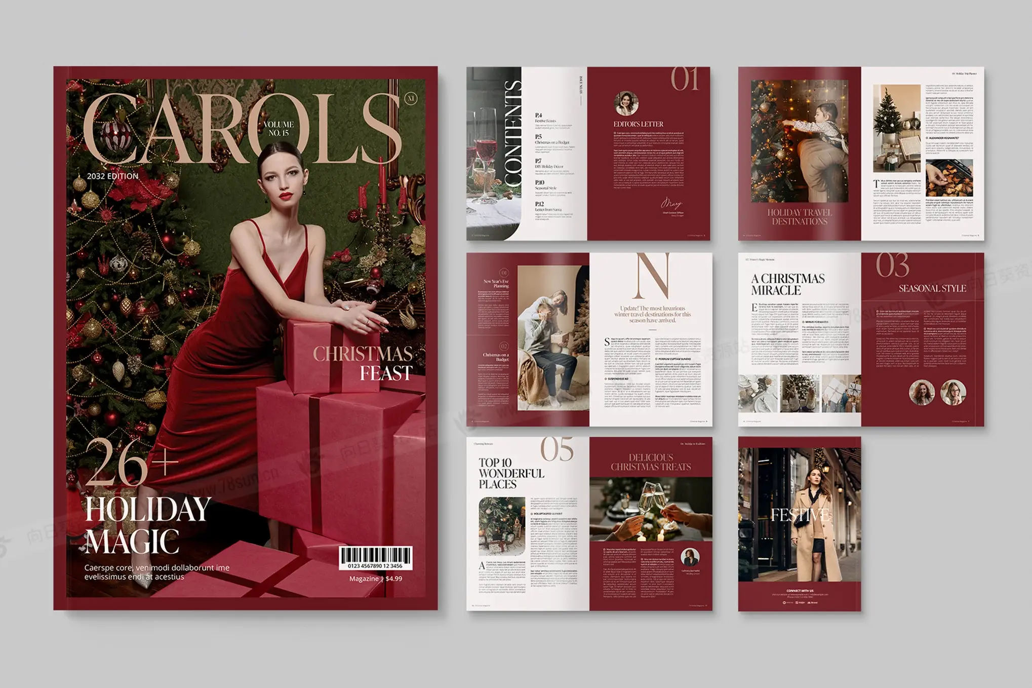 圣诞节日小册子杂志宣传册画册indd设计模板,适合设计师制作节日小册子、目录或节日小册子。它提供 InDesign IDML 和 INDD 格式,非常适合创建时尚的杂志或双折出版物。活动策划者、营销人员和创意人员可以使用这种多功能布局轻松增强节日促销或季节性项目。