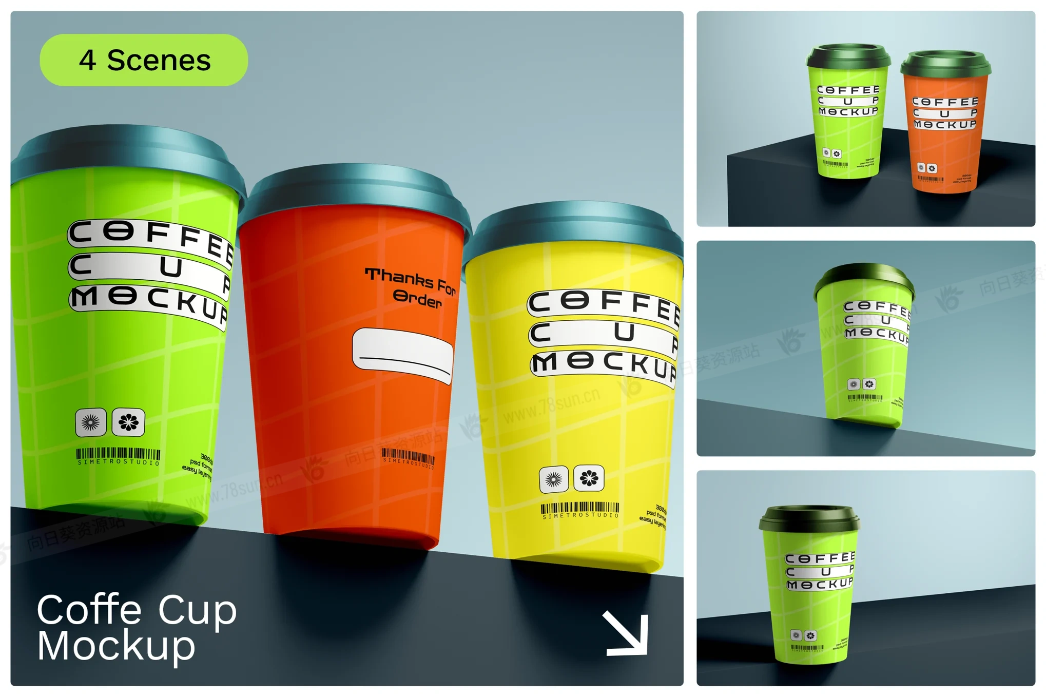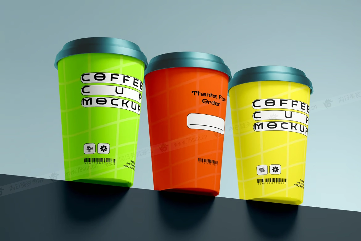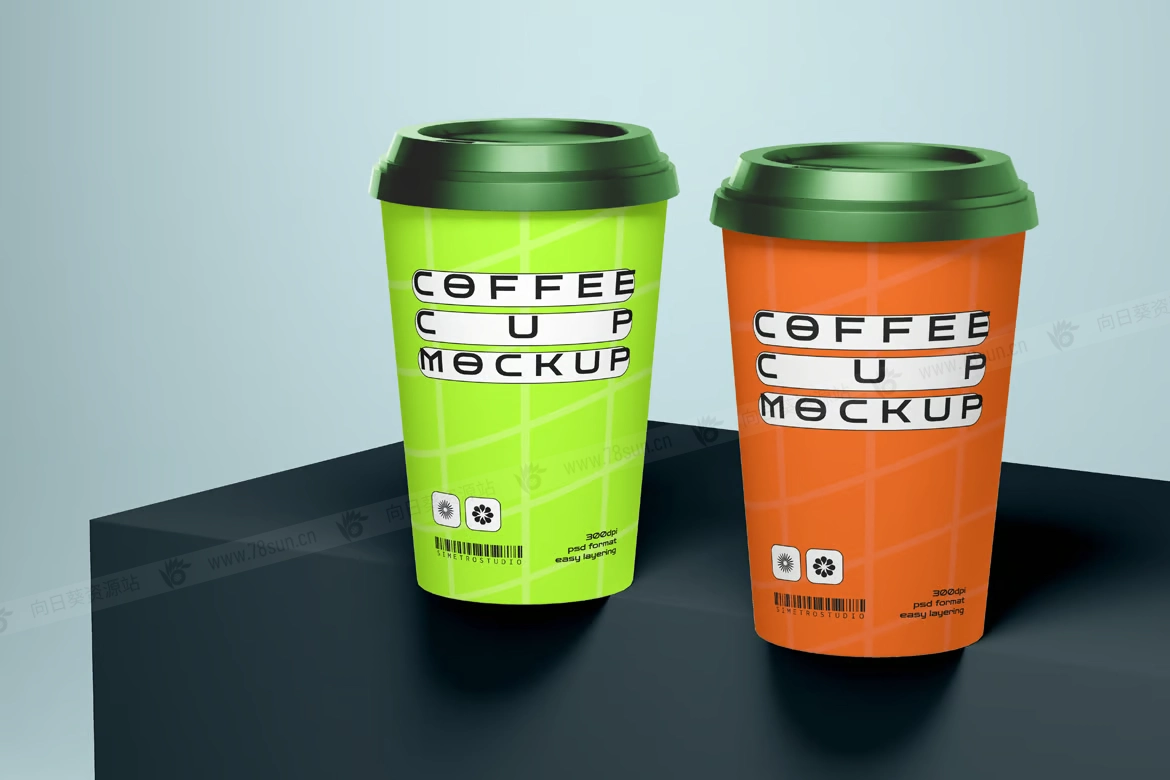 咖啡杯纸杯奶茶杯品牌VI效果图展示智能贴图psd设计样机,