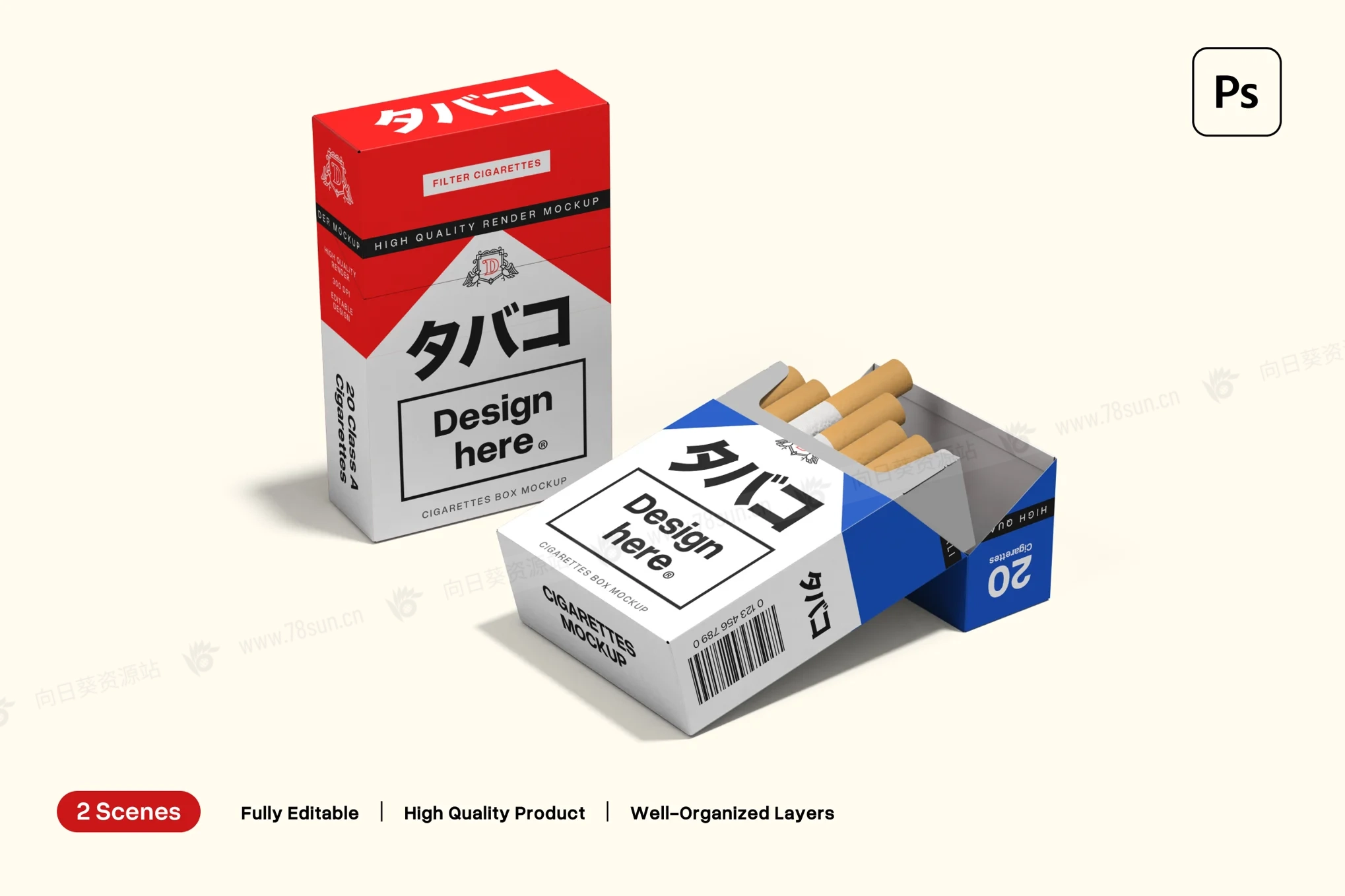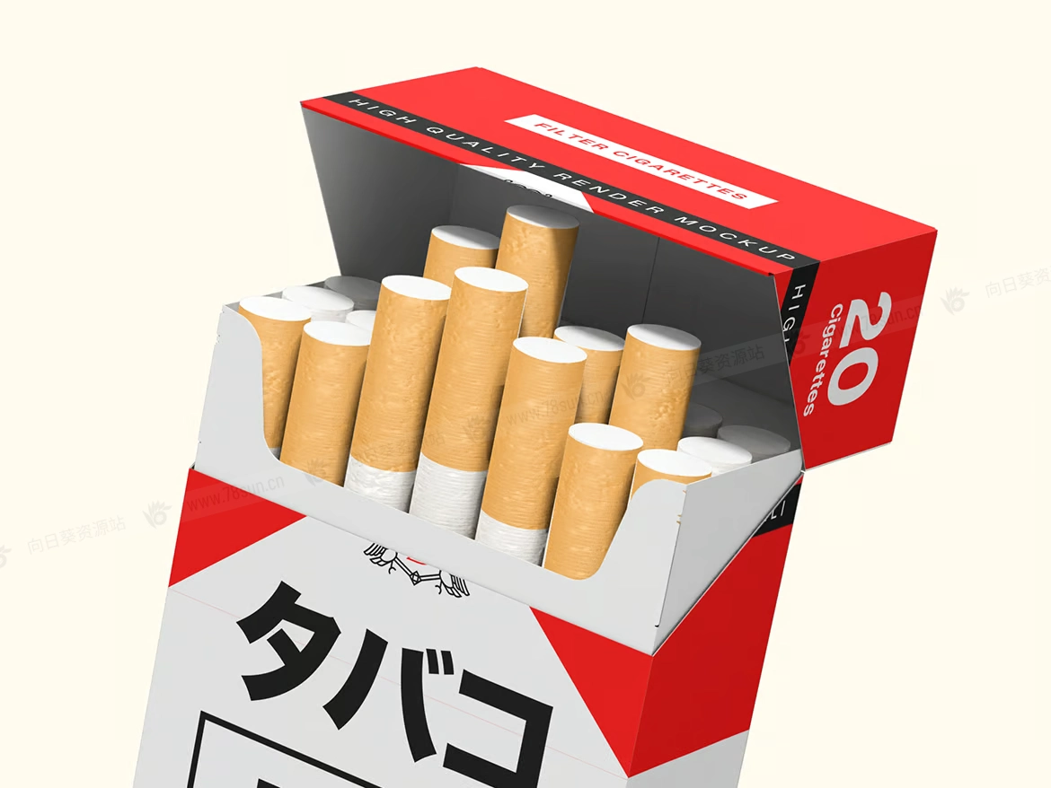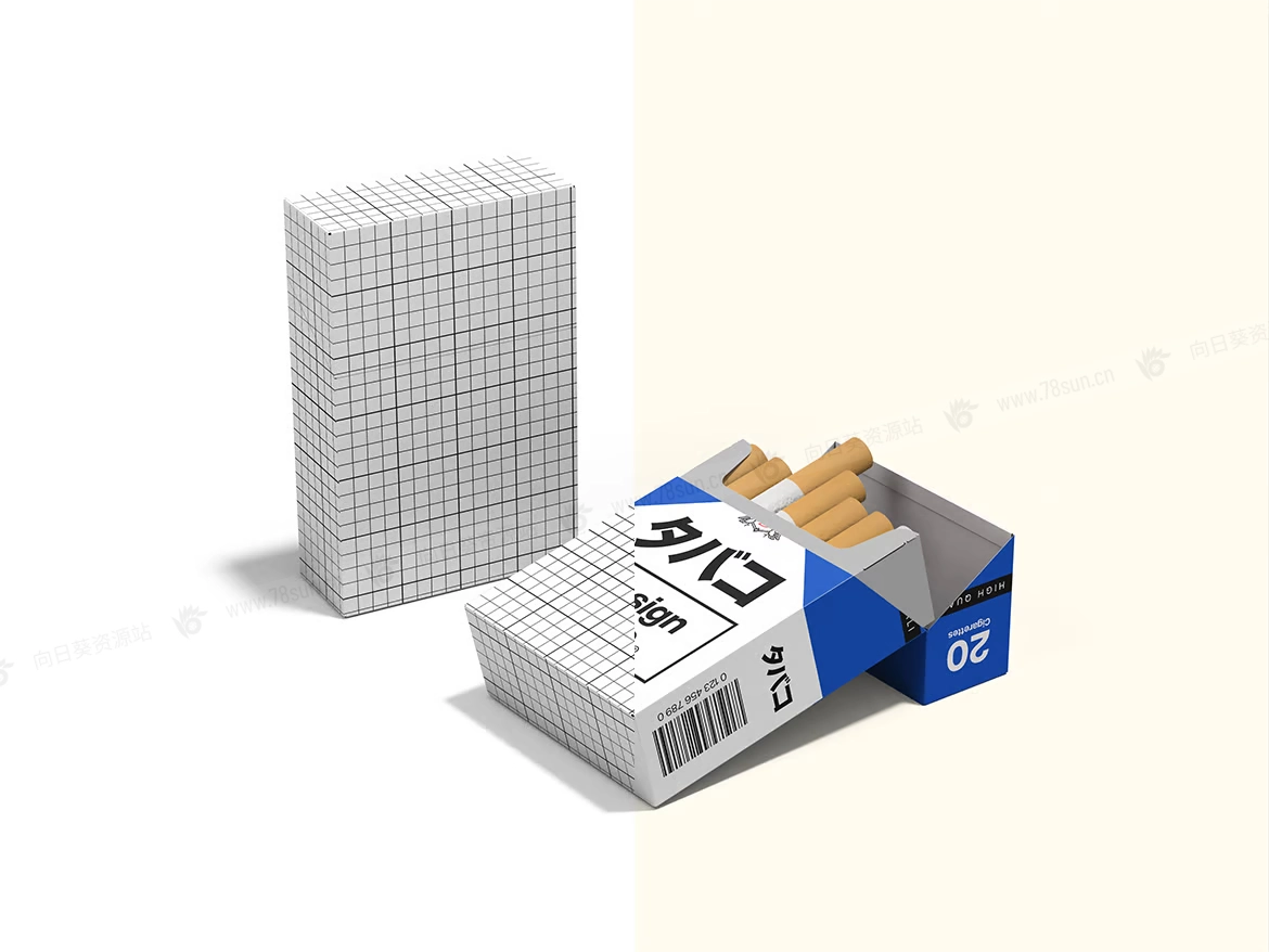 香烟包装纸盒品牌VI效果图展示智能贴图psd设计样机,可以从不同角度展示你的设计。您可以轻松地将自定义图稿添加到框中、更改颜色并调整背景以满足您的需求。智能对象功能允许您以最少的工作量快速应用您的设计,从而为您提供最终产品的真实预览。