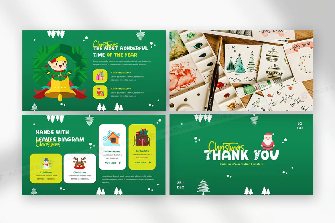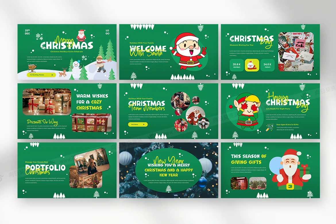 演示中的所有图像仅用于预览目的,实际上并未包含在文件中,有圣诞元素