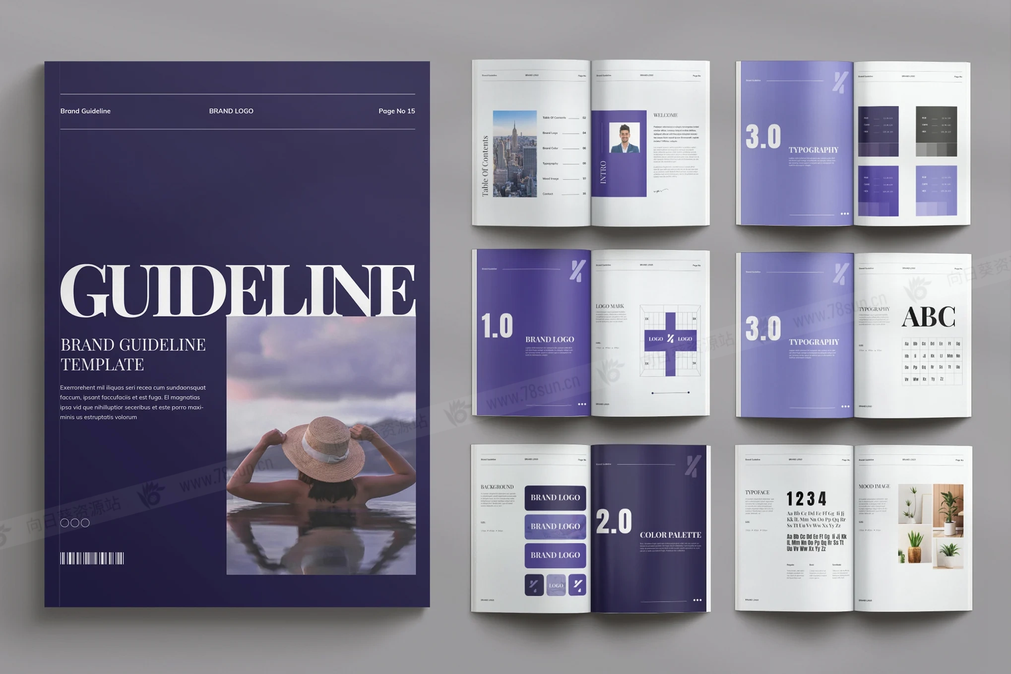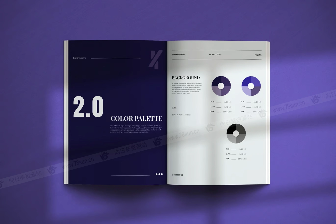品牌指南小册子杂志宣传册画册indd设计模板,是现代排版、强烈色彩和精美布局的混合体。此模板功能 6 个部分,功能齐全。部分包括:品牌策略、徽标、颜色、排版、图像、 文具、社交媒体和定义。此模板中的大部分副本是真正的可用副本。