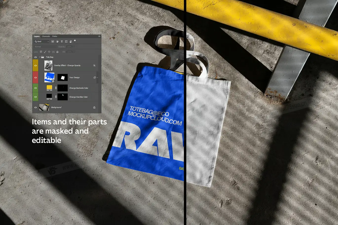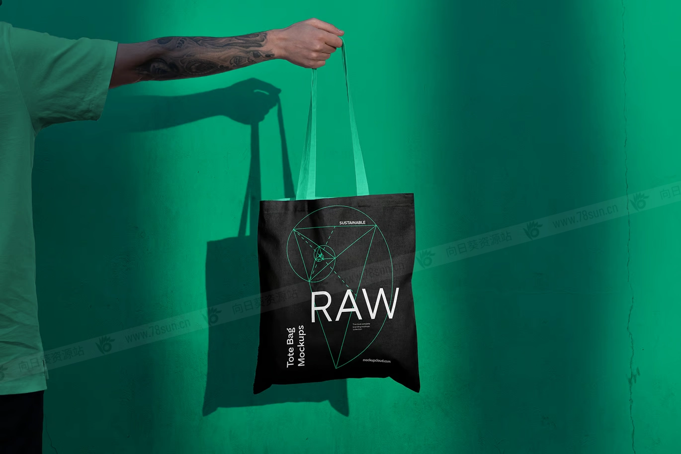 特包手提袋帆布包品牌VI效果图展示智能贴图psd设计样机,真实环境中的手提袋模型,具有深自然的阳光阴影 –