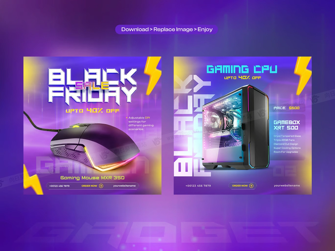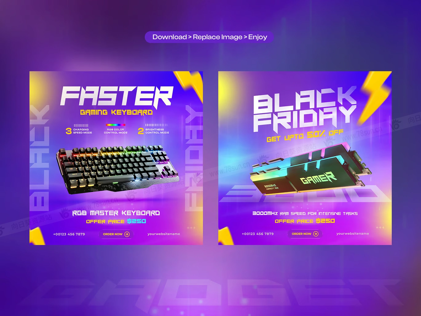 计算机科技产品销售海报宣传单社交媒体banner主图psd设计模板。这款设计套装非常适合推动参与和销售,这些文件易于编辑,以便您可以轻松更改 标题 和您选择的其他文本,还可以更改文本和背景颜色。