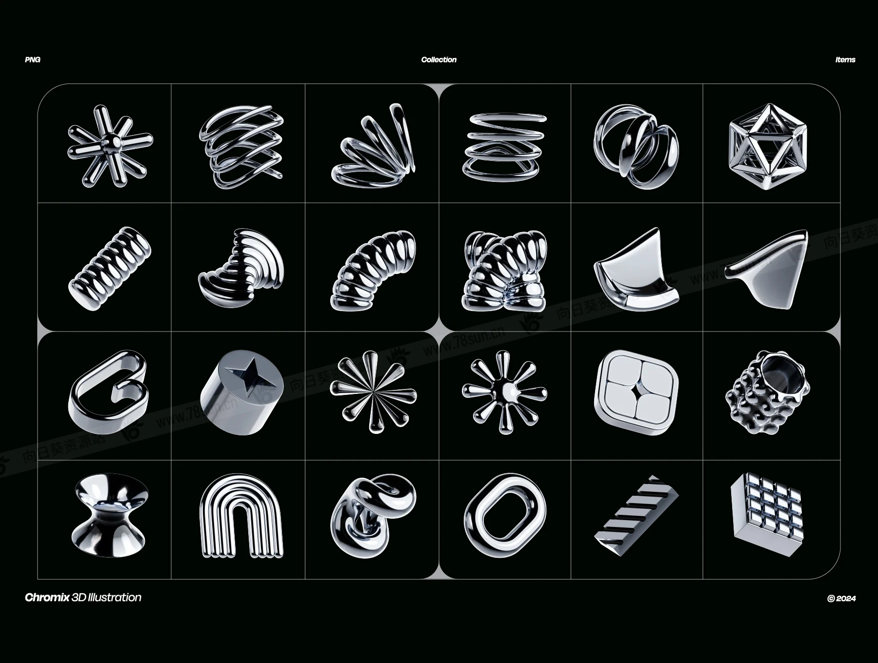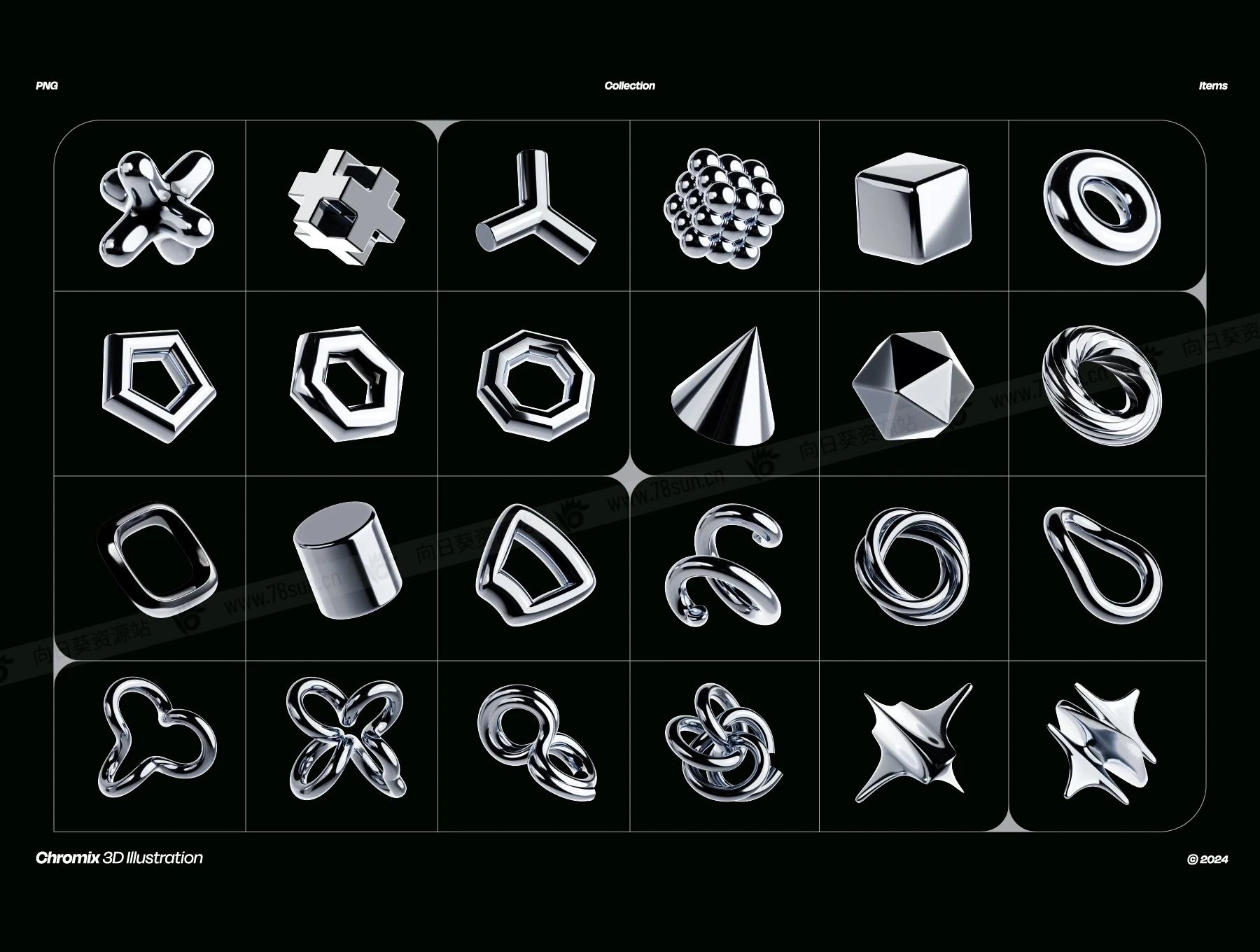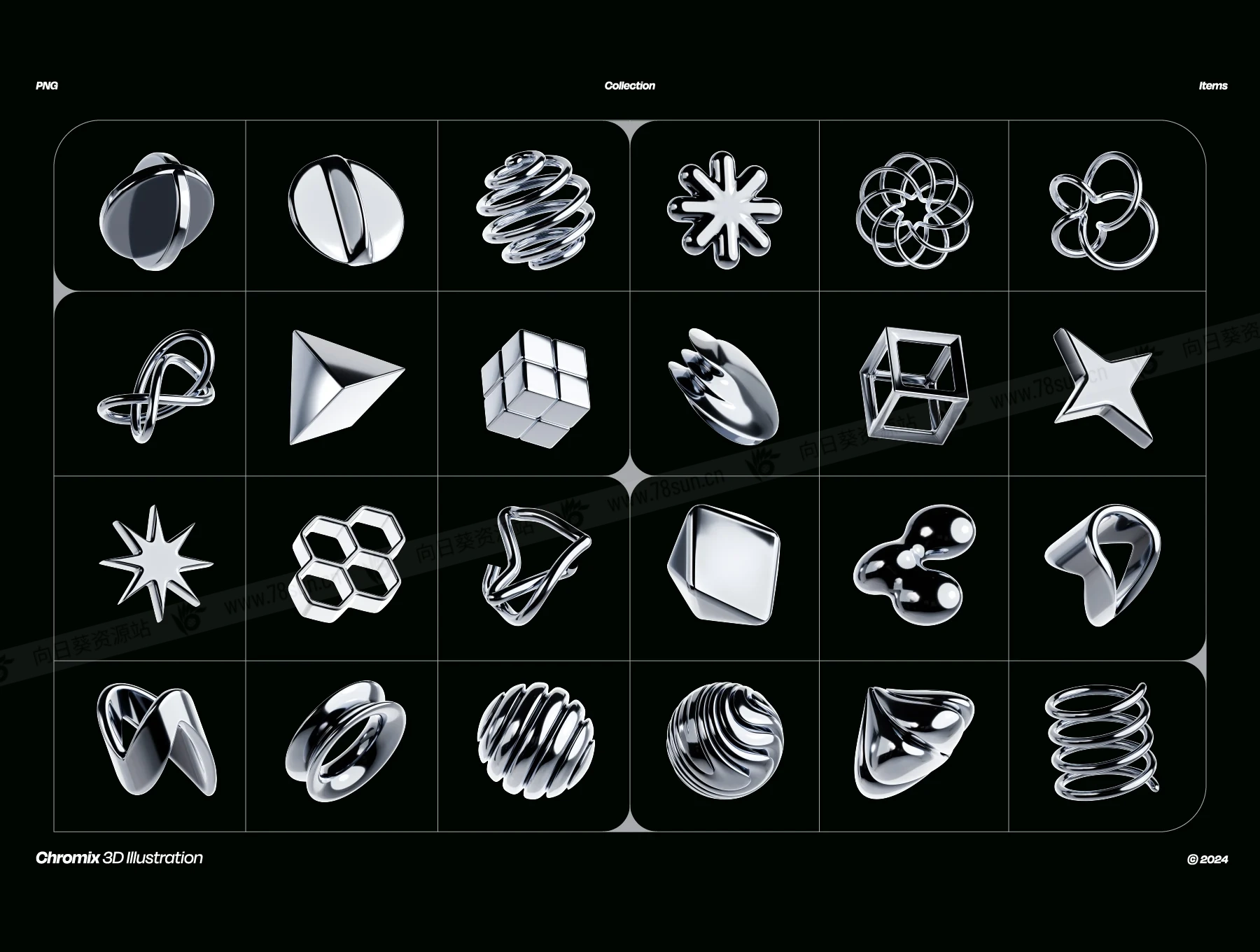 3D立体银色金属质感抽象形状插图png设计模板,使用 3D Chromix 提升您的移动应用程序、UI/UX 和网页设计项目,为您的设计添加独特而引人注目的元素。