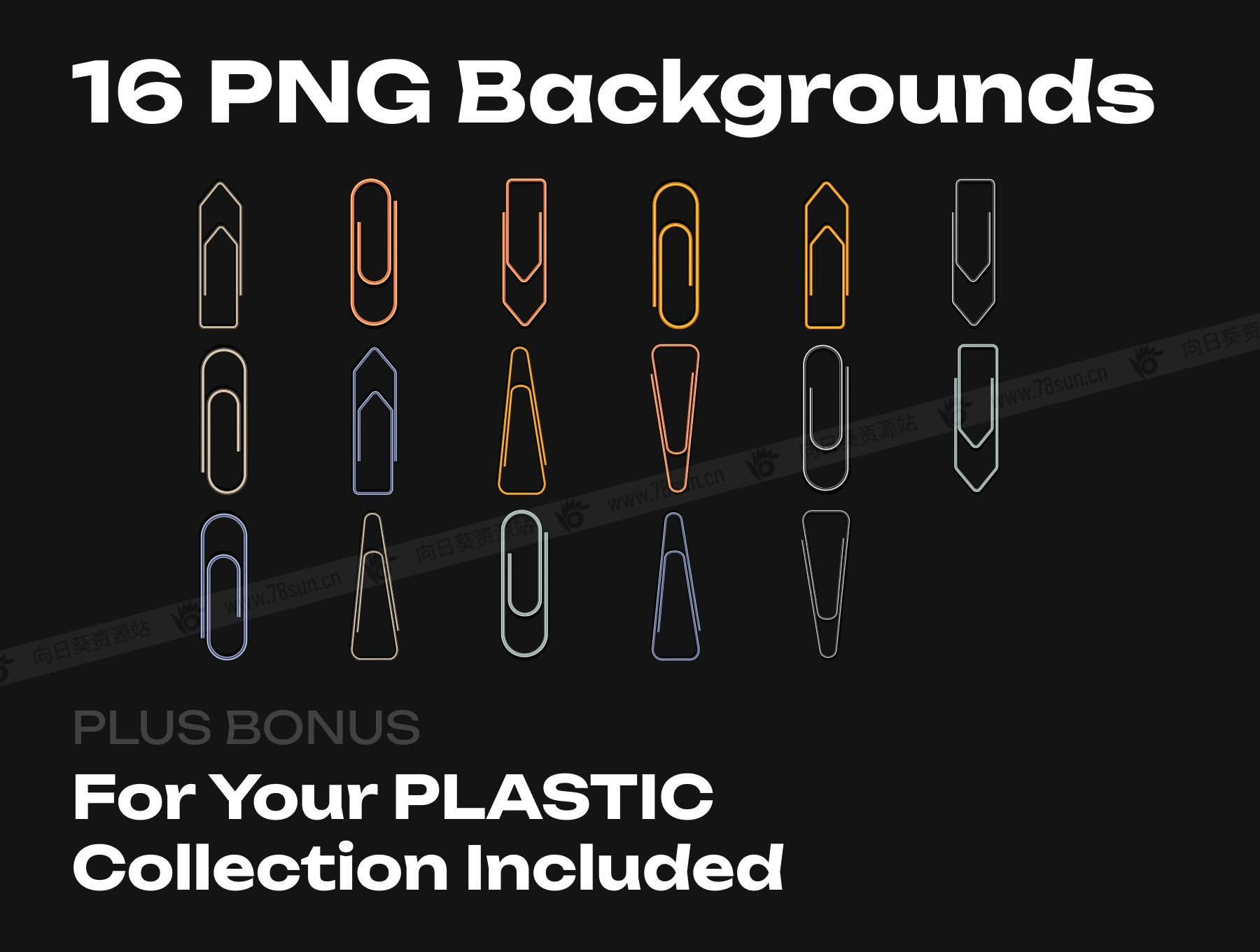 塑料袋薄膜回形针矢量图形fig设计元素。此软件包包含各种优秀物品,其中包含 70+ PLASTIC 系列,旨在轻松编辑、调整和母带制作。您还将获得 17 个回形针;非常适合创建有意义的艺术内容,一定会吸引买家!