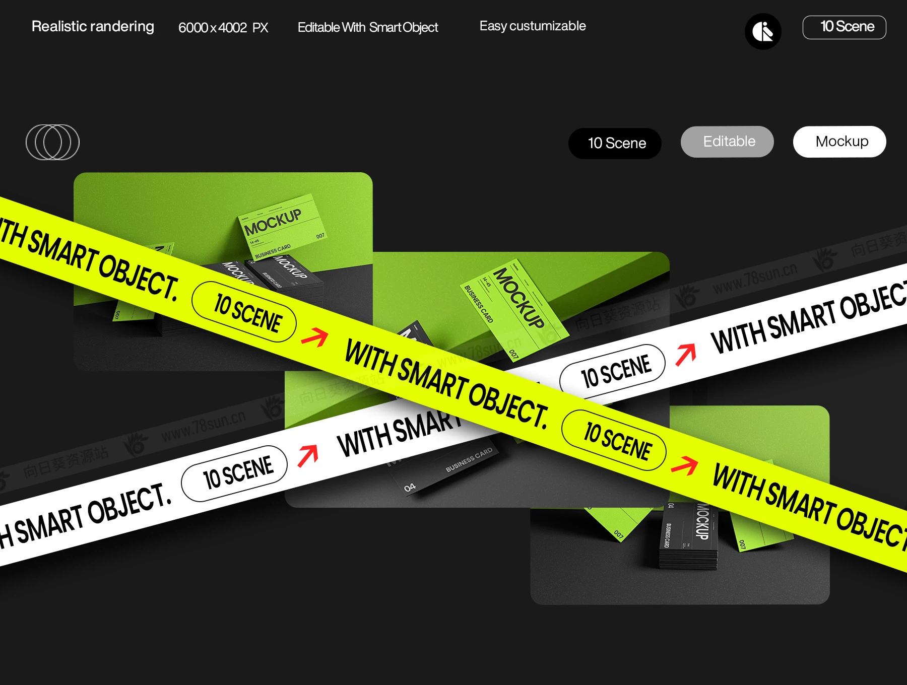 名片商业卡片品牌VI效果图展示智能贴图psd设计样机,使用这款现代黑色和绿色名片模型模板提升您的名片演示文稿。这款高分辨率模型采用时尚的设计,充满活力的绿色卡片与一堆黑色卡片形成鲜明对比,非常适合创建引人注目的专业展示。此模板非常适合平面设计师、营销人员和品牌专业人士,包括可定制的智能对象,可轻松集成您自己的设计。用这款时尚而有影响力的名片模型给你的客户留下深刻印象并增强你的投资组合,旨在以精致和天赋展示你的品牌项目。
