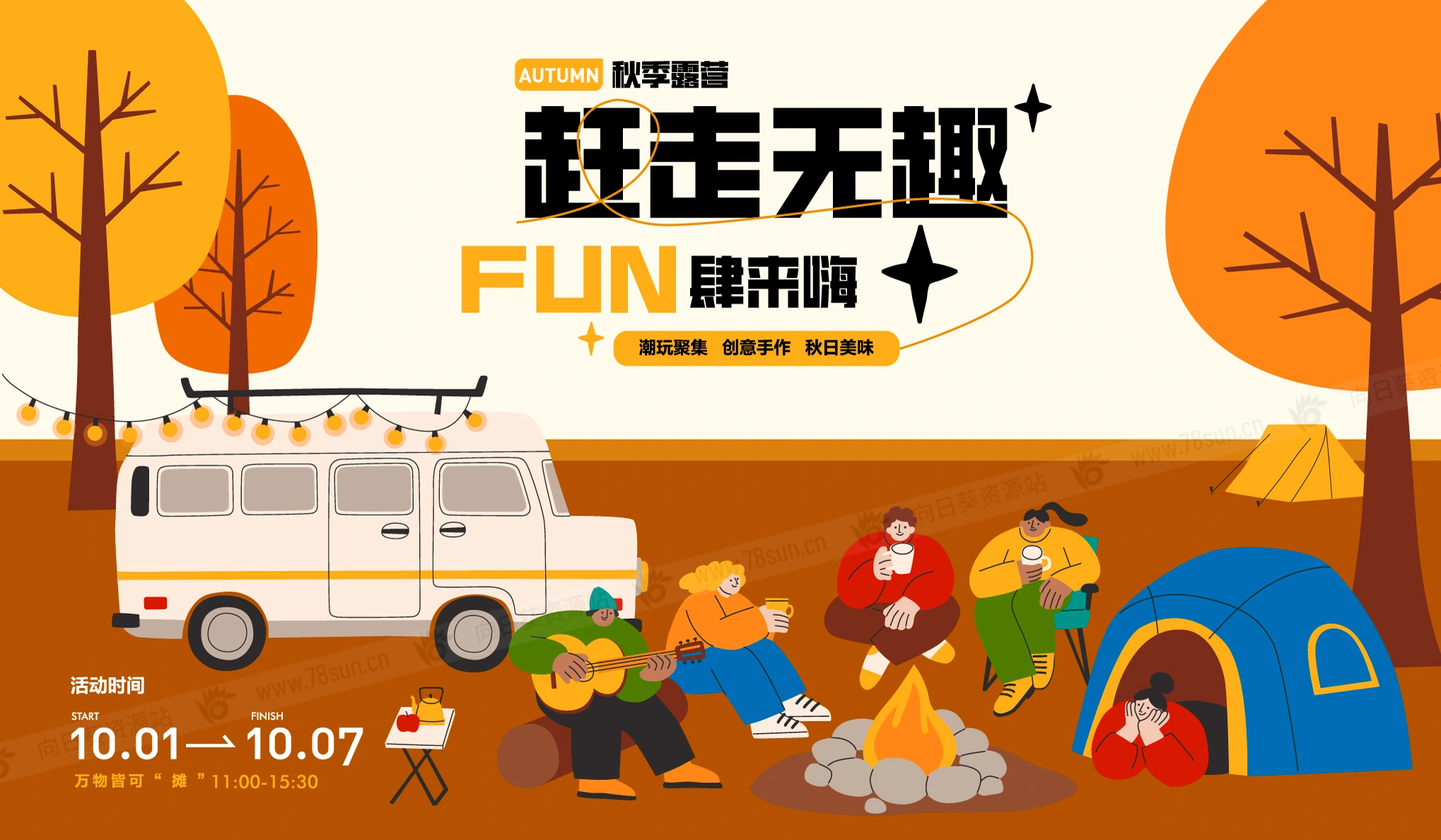 秋季露营市集活动宣传海报展板插画ai设计素材模板,illustrator格式 声明:本站所有资源版权均属于原作者所有,这里所提供资源均只能用于参考学习用,请勿直接商用。若由于商用引起版权纠纷,一切责任均由使用者承担。更多说明请参考 VIP介绍。