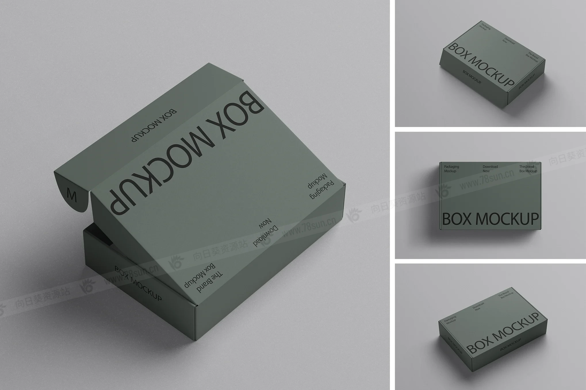 盒子礼品包装纸盒VI效果图展示智能贴图psd设计样机,此模型包括 04 个具有分层良好的 PSD 文件的项目,并且此模型还使用智能对象功能,这意味着您可以在几秒钟内轻松快速地使用自己的设计更改当前设计。
