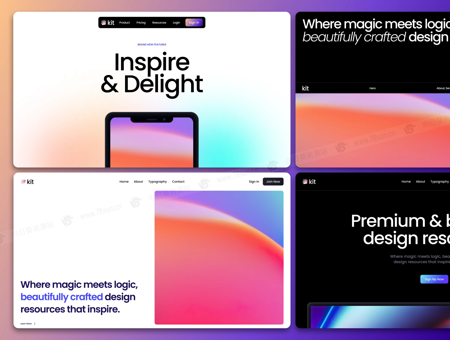 渐变炫彩web网页banner首屏背景fig设计模板,包含 69 个。 声明:本站所有资源版权均属于原作者所有,这里所提供资源均只能用于参考学习用,请勿直接商用。若由于商用引起版权纠纷,一切责任均由使用者承担。更多说明请参考 VIP介绍。