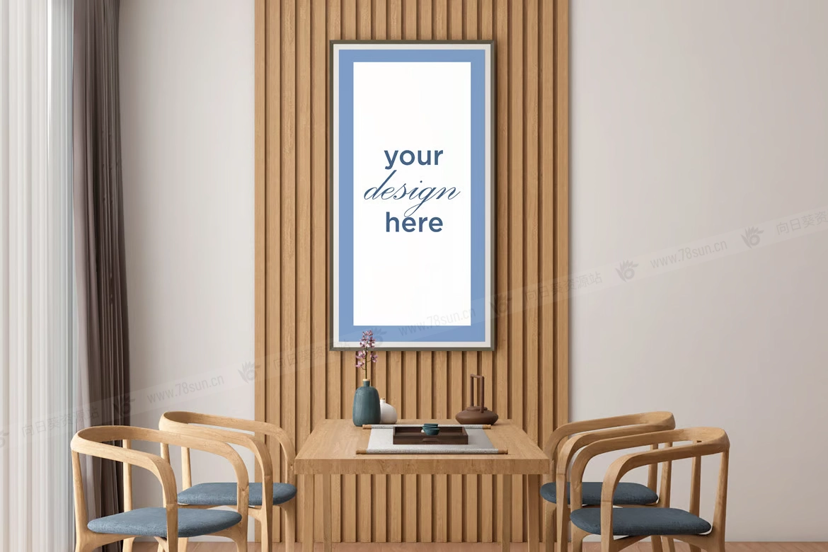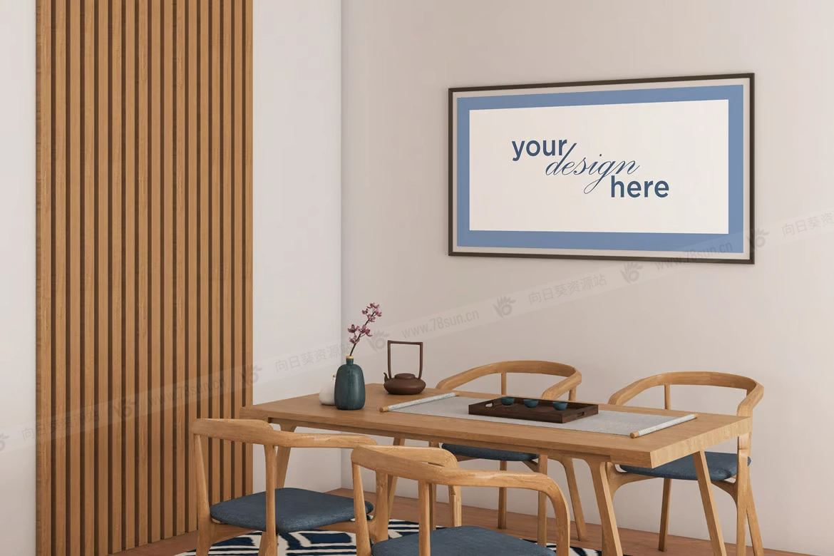 餐厅墙面相框架VI效果图展示智能贴图psd设计样机 – 分层、可编辑的 PSD 文件,只需编辑智能对象和颜色图层,即可展示您的自定义设计。