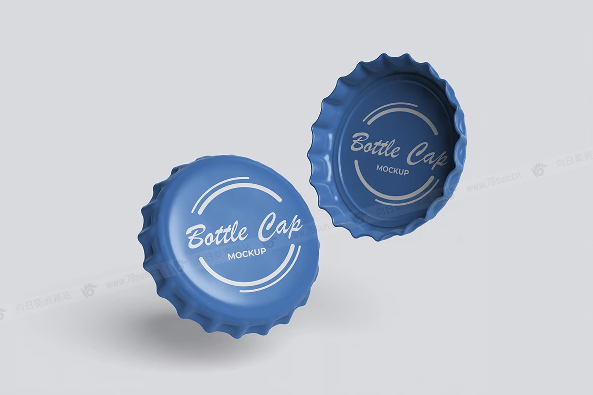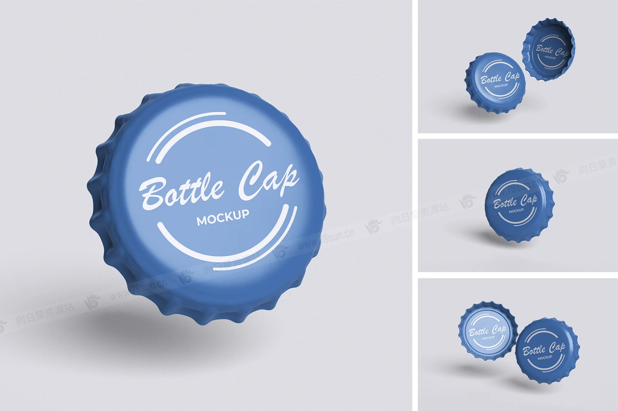 啤酒汽水饮料瓶盖品牌VI效果图展示智能贴图psd设计样机,包括 04 个具有分层良好 PSD 文件,并且此模型还使用智能对象功能,这意味着您可以在几秒钟内轻松快速地使用自己的设计更改当前设计。