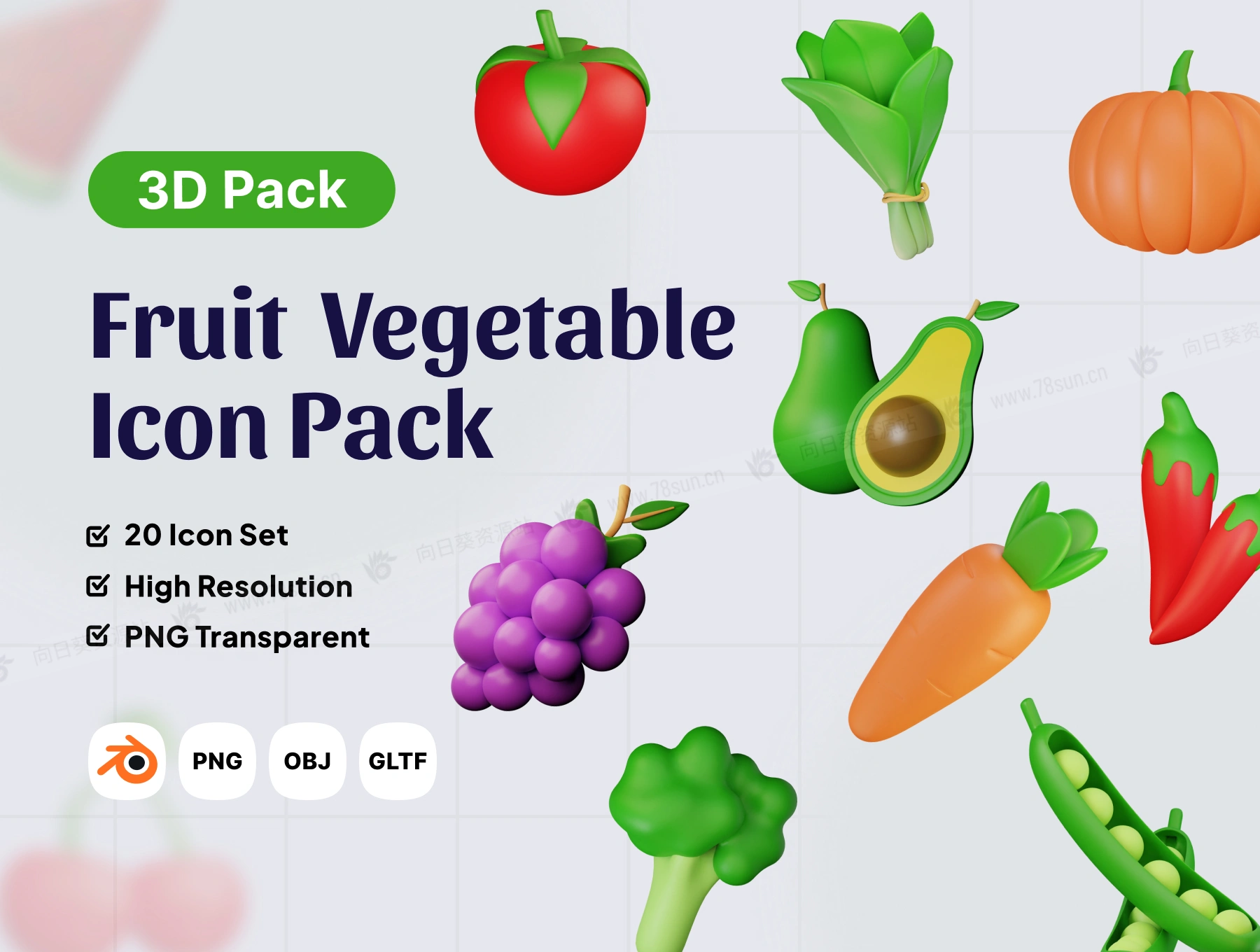 3D立体蔬菜水果牛油果青菜南瓜矢量图形blend设计模板,用于设计需求、应用程序、UI 设计、网页设计、演示文稿、海报、社交媒体广告、内容创建者等。