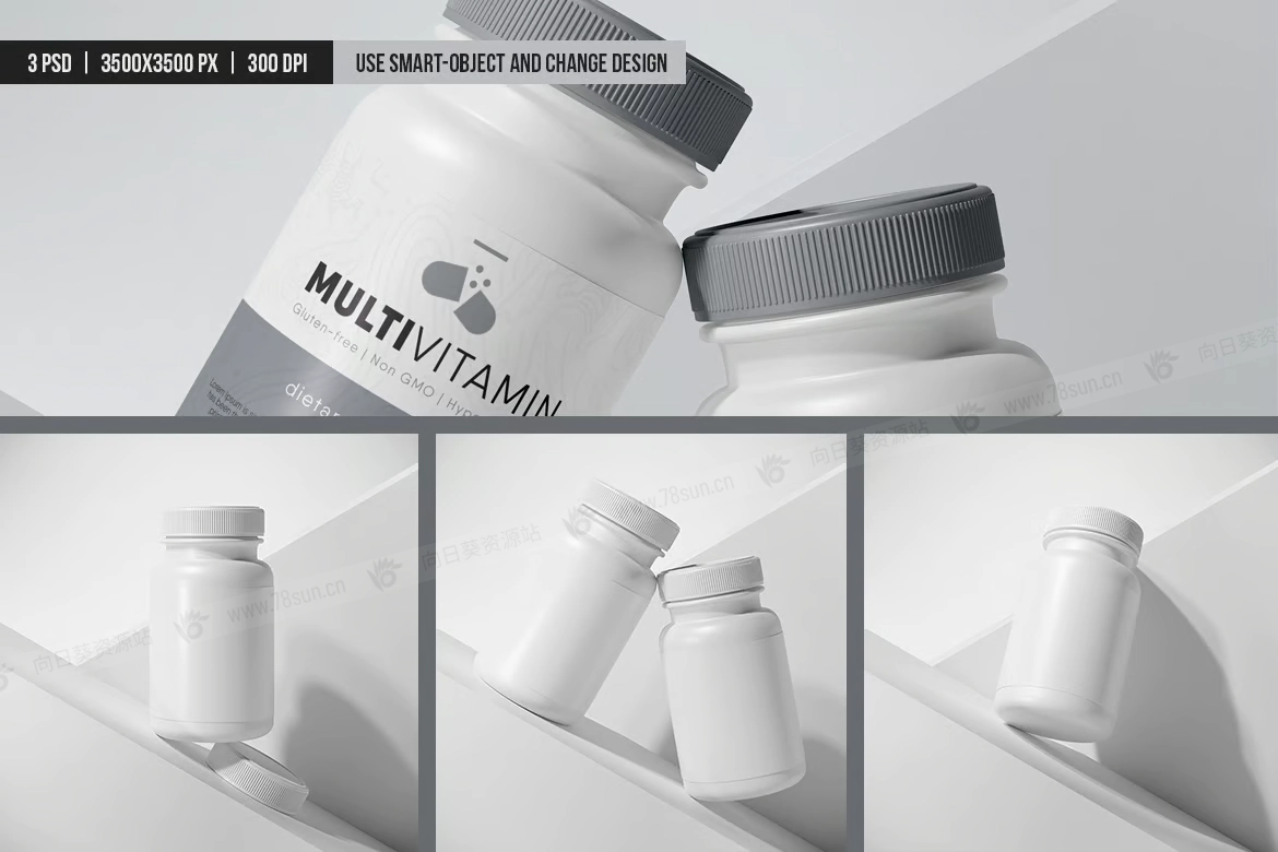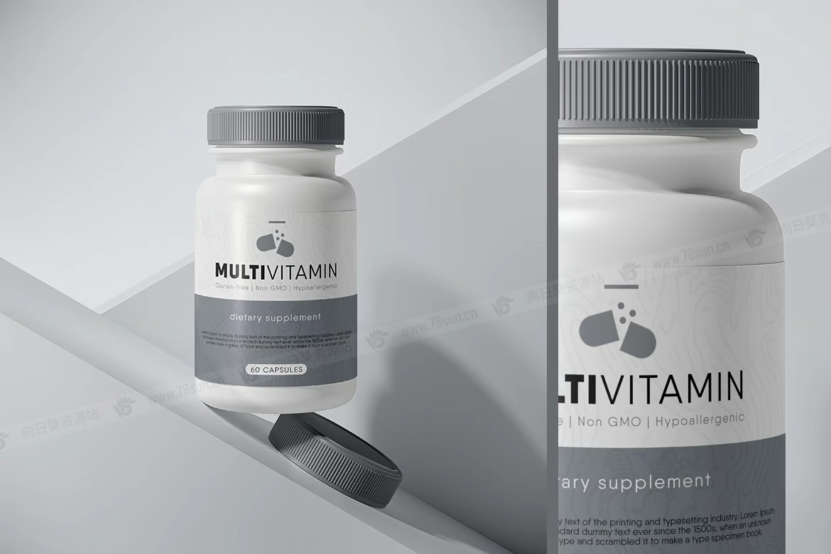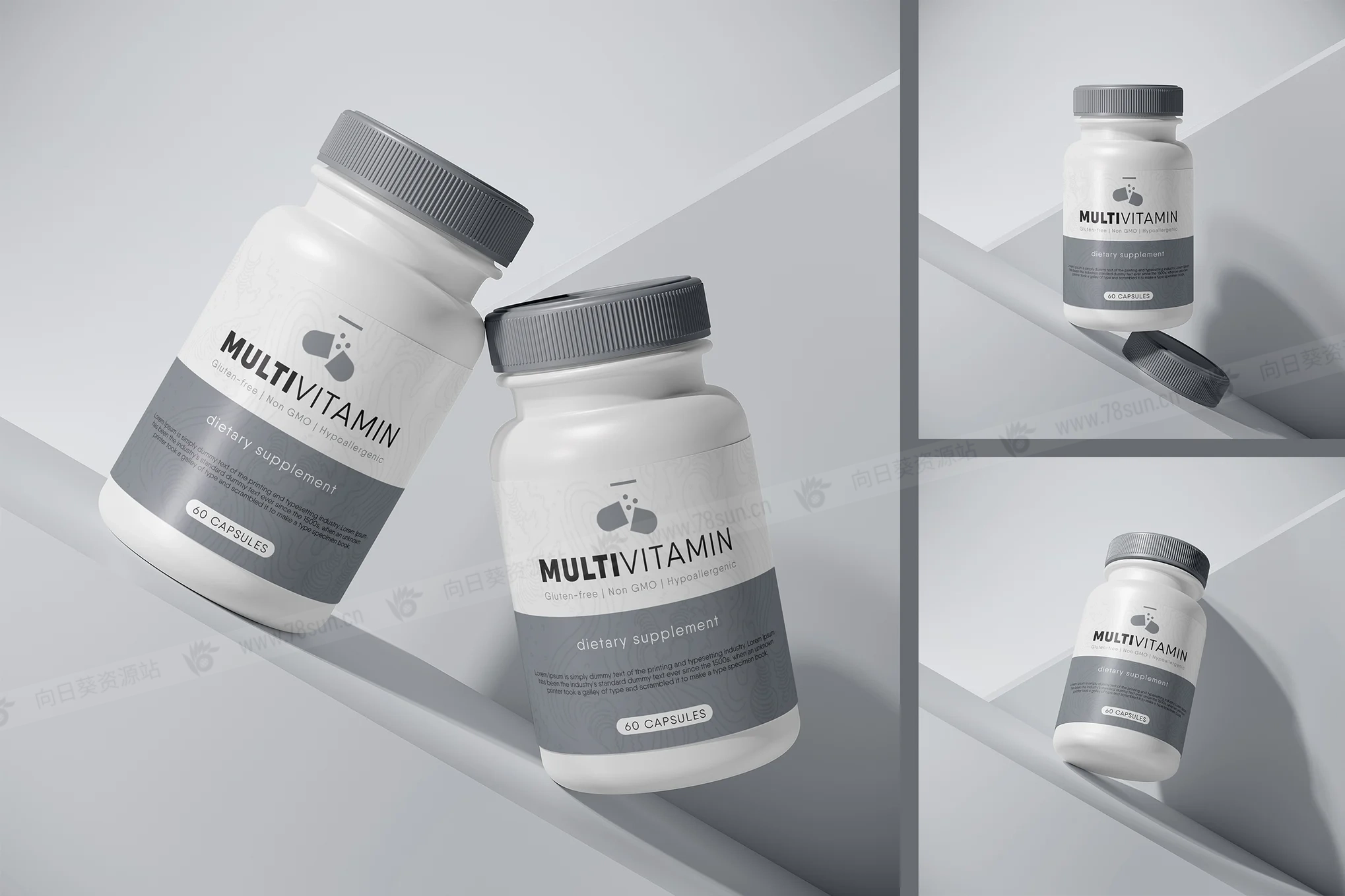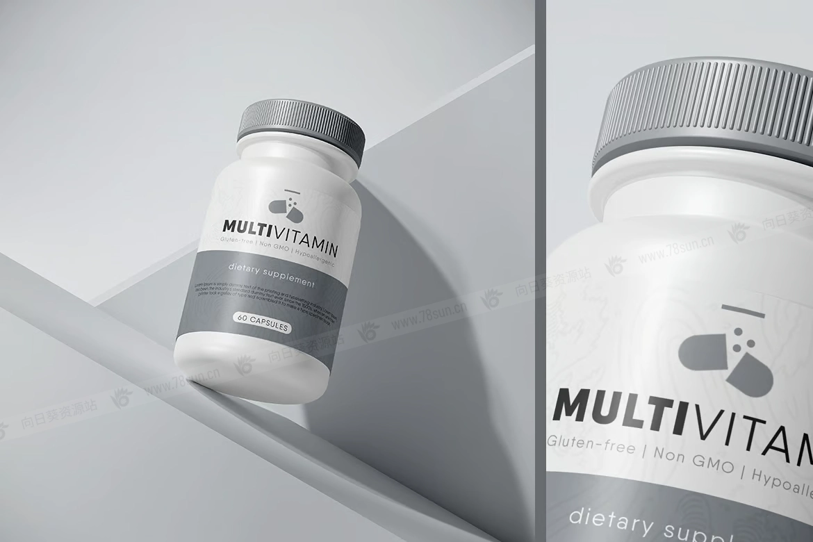 瓶子药瓶品牌VI效果图展示智能贴图psd设计样机,
