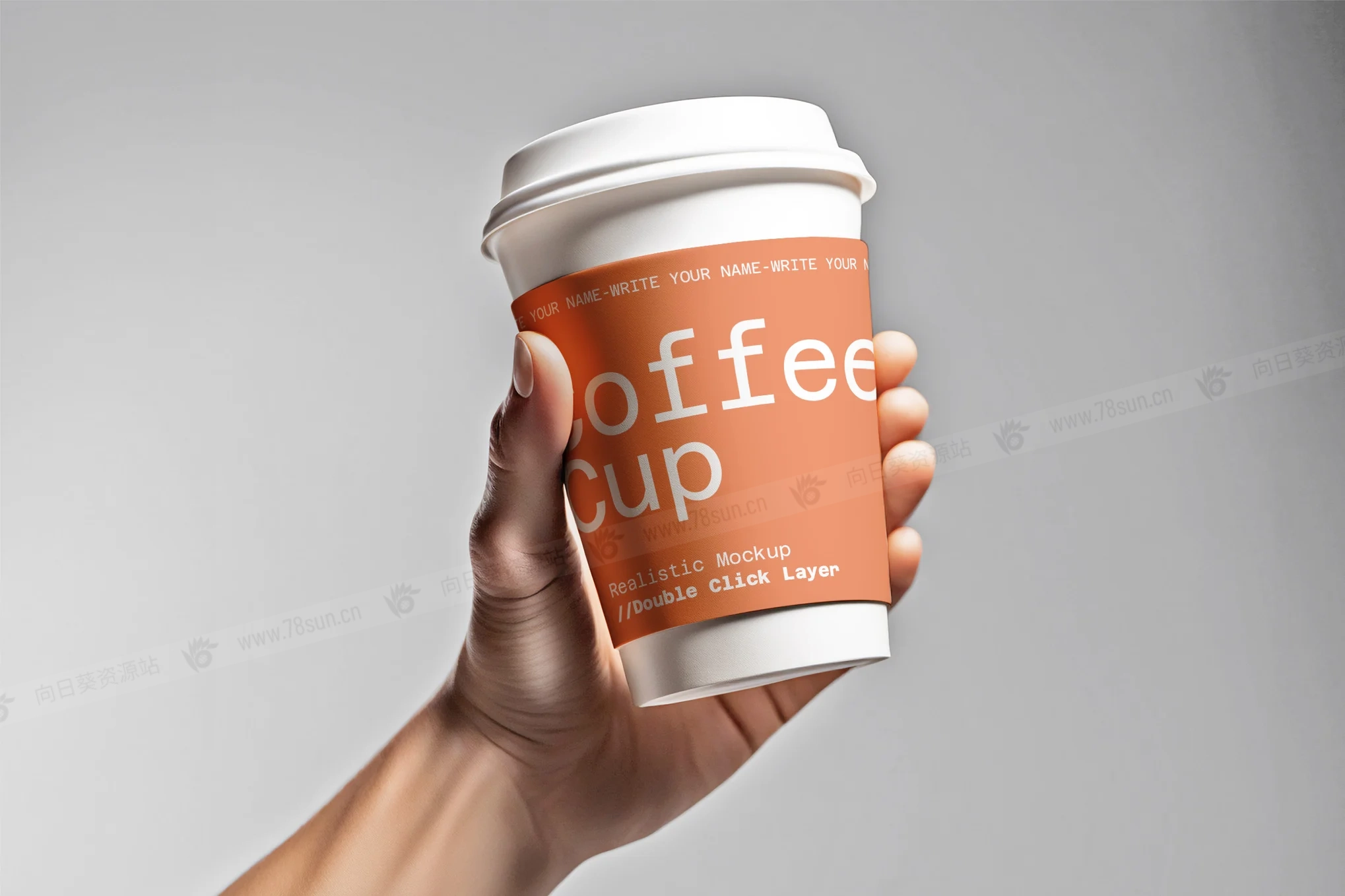 手持咖啡杯奶茶杯品牌VI效果图展示智能贴图psd设计样机,与 Adobe Photoshop 兼容