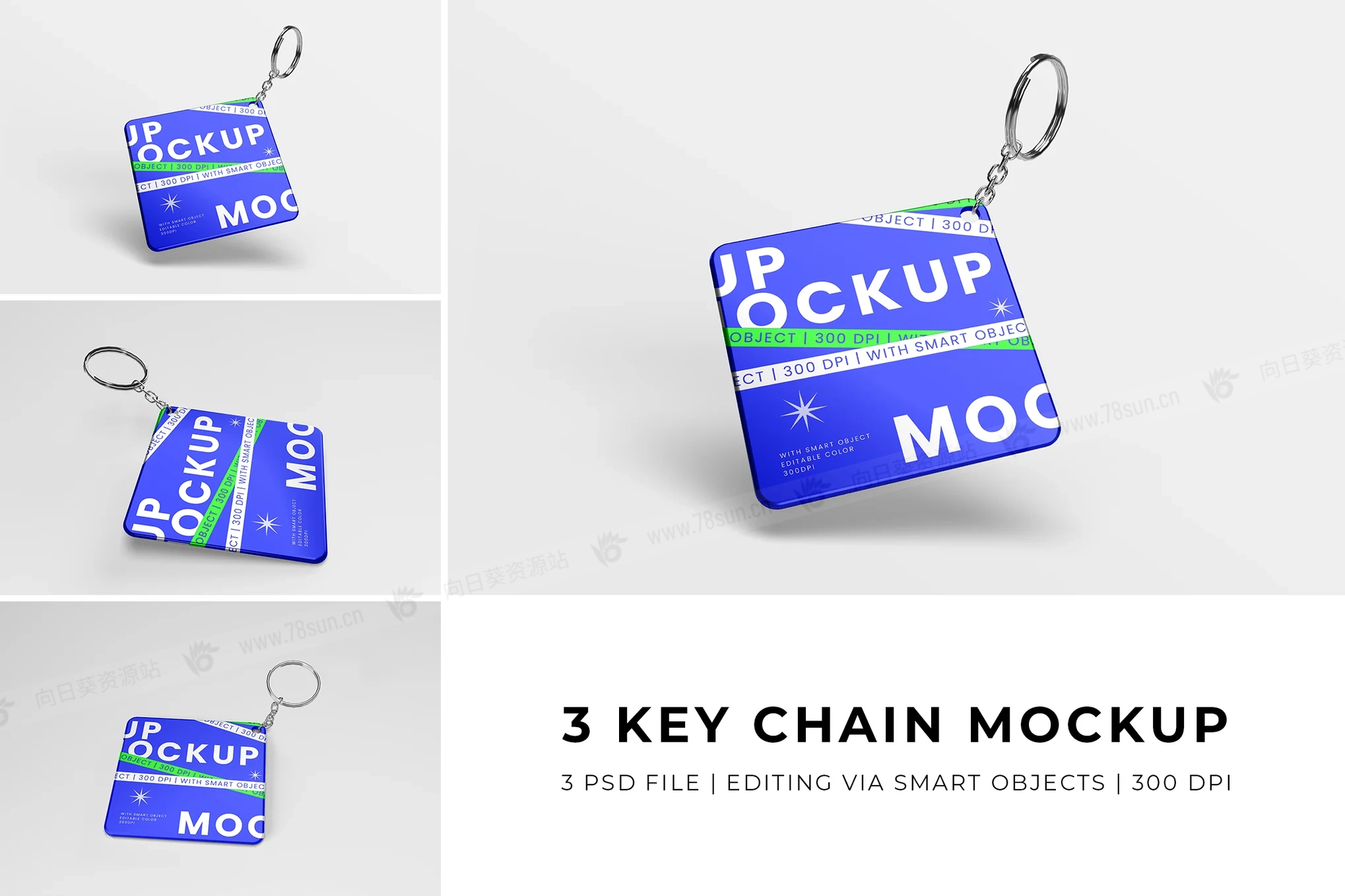 方形钥匙扣品牌VI效果图展示智能贴图psd设计样机,以下是包含的内容: