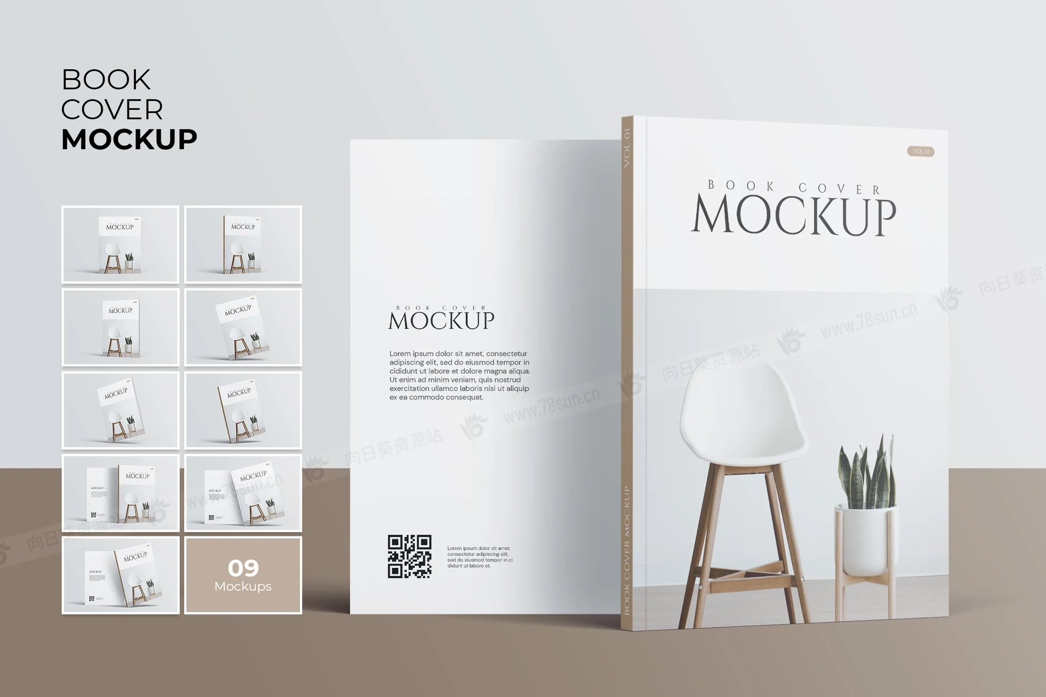 书籍封面VI效果图展示智能贴图psd设计样机,