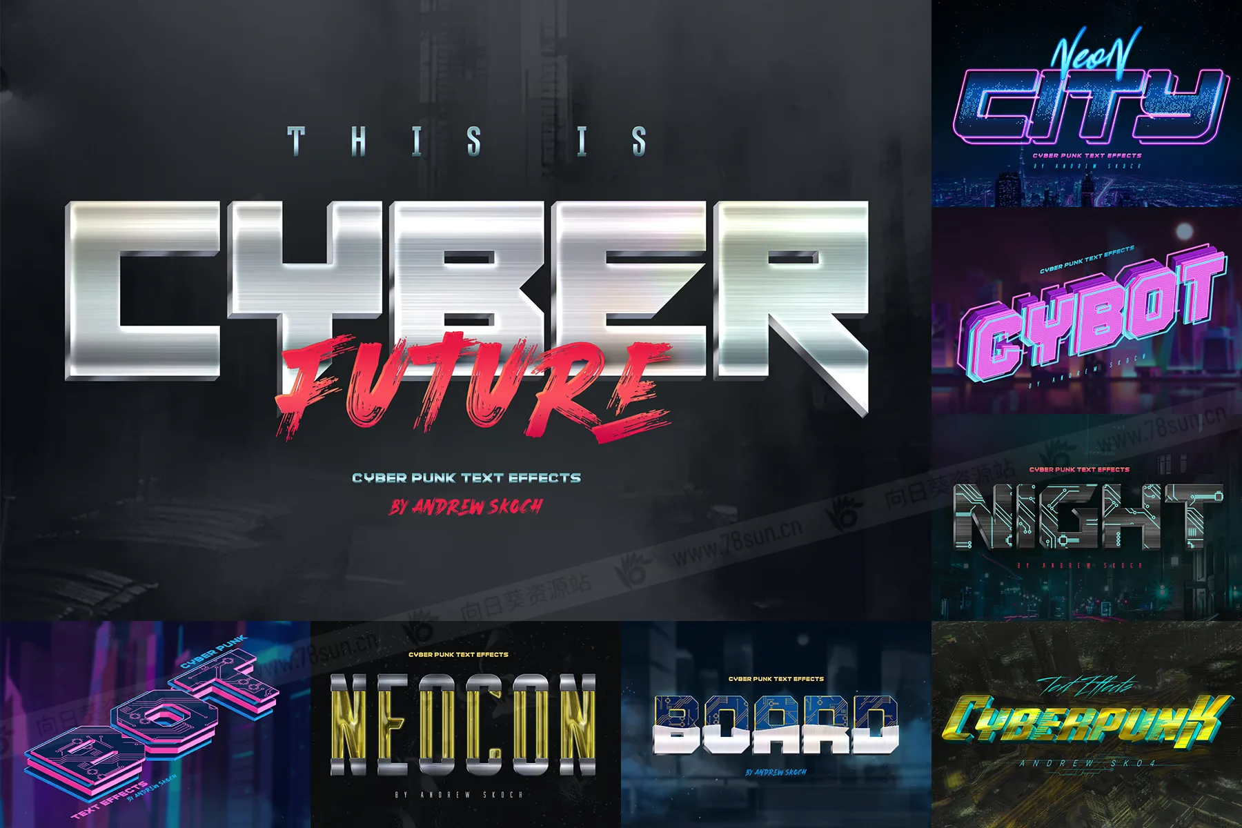 赛博朋克故障霓虹灯文本字体文字效果psd设计模板,赛博朋克 2077 风格、故障效果、霓虹灯效果。 使用此文字效果创建酷炫的复古海报、传单、书籍封面、邀请函、明信片等。只需将它们替换为您最喜欢的风格的智能对象。