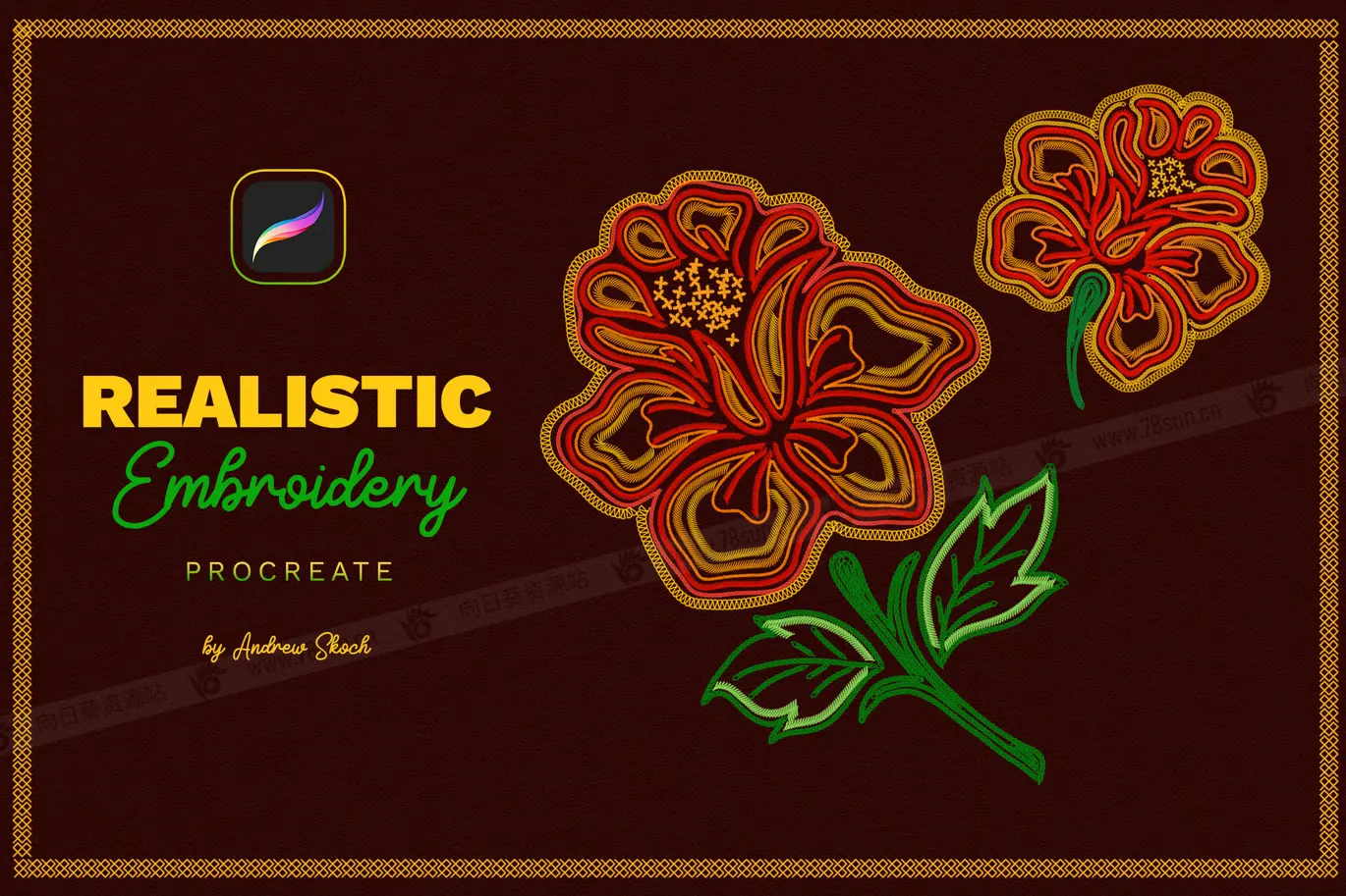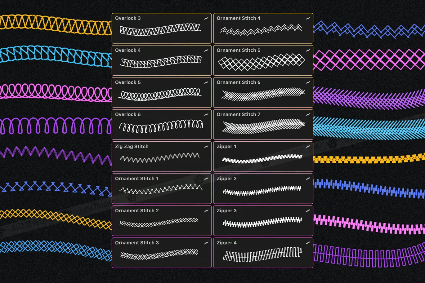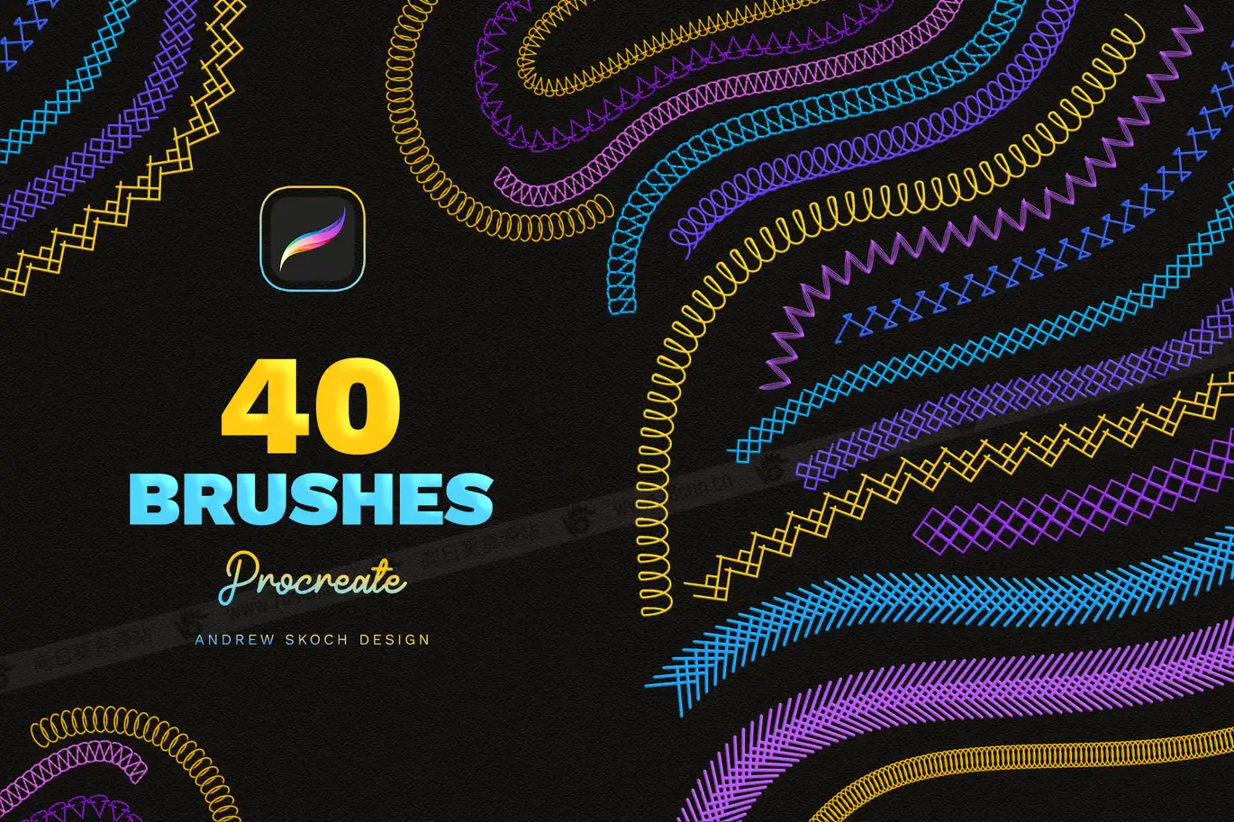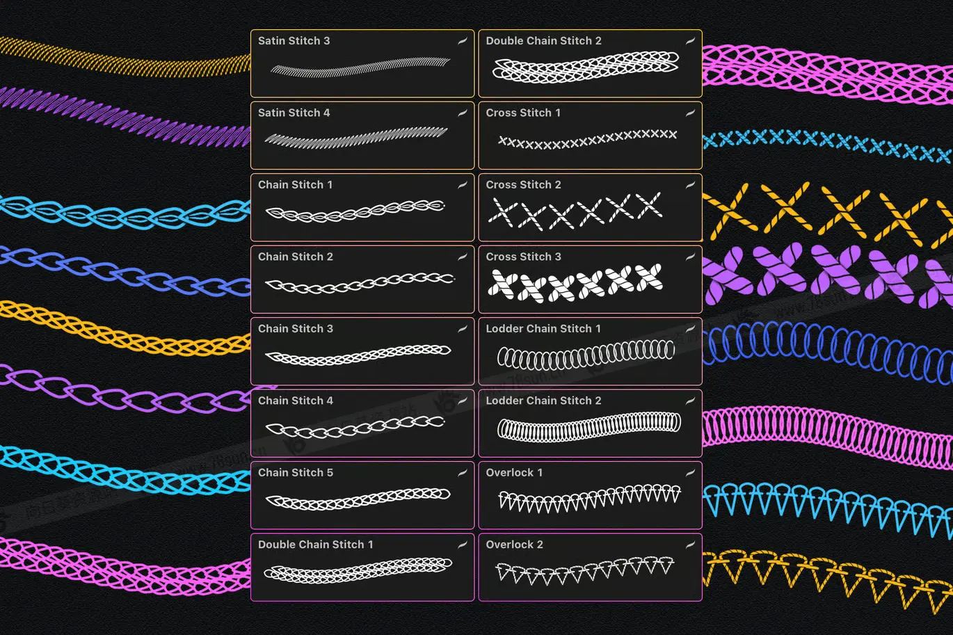 刺绣针迹 Procreate 画笔用于 iPad 绘图的逼真刺绣针迹。Procreate 的 40 种不同的画笔。非常适合绘制真实的装饰品、刺绣装饰品、刺绣补丁等。
