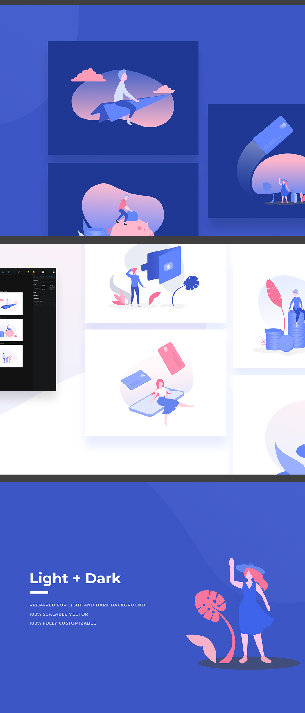 人脸识别钱包手机银行场景sketch xd插画矢量图形素材包模板