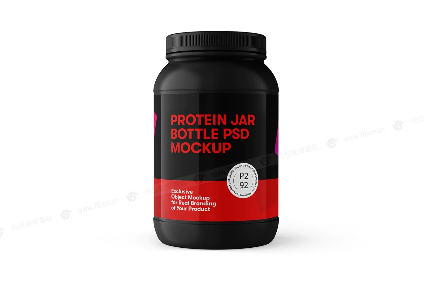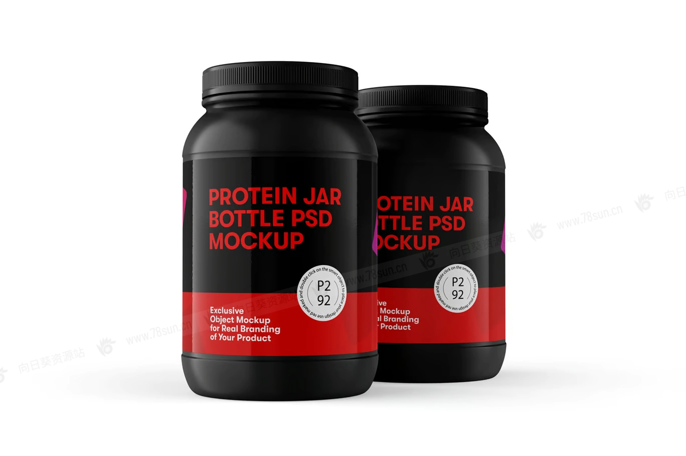 蛋白质罐钙片塑料瓶品牌VI效果图展示智能贴图PSD设计样机。从 12 盎司到 32 盎司的多种尺寸选择