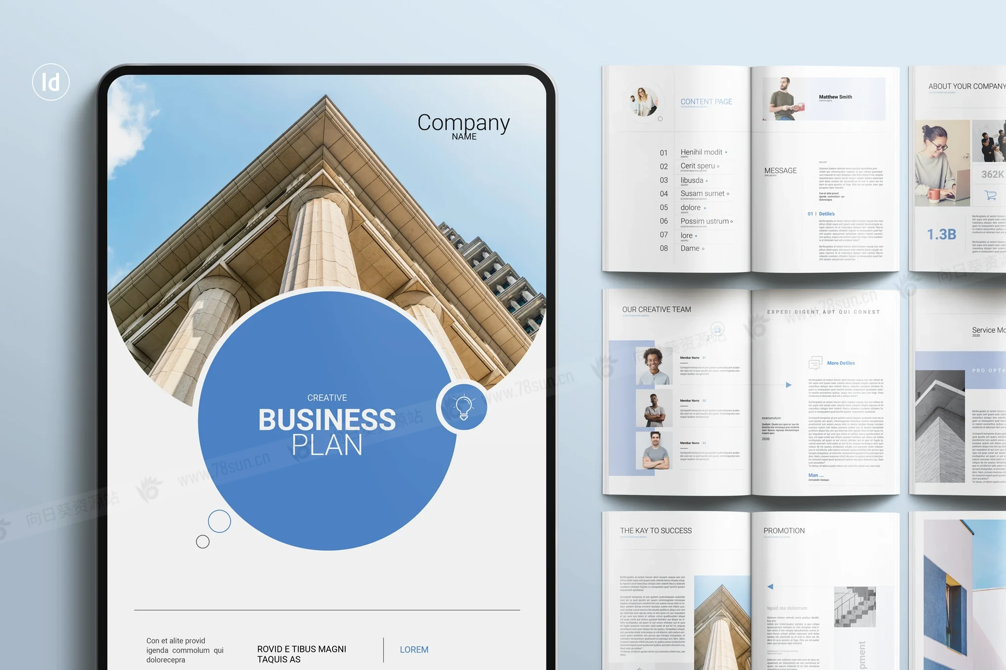 公司简介商业计划书小册子杂志宣传册画册indd设计模板,添加您的徽标和图像并编辑您的品牌颜色和排版,