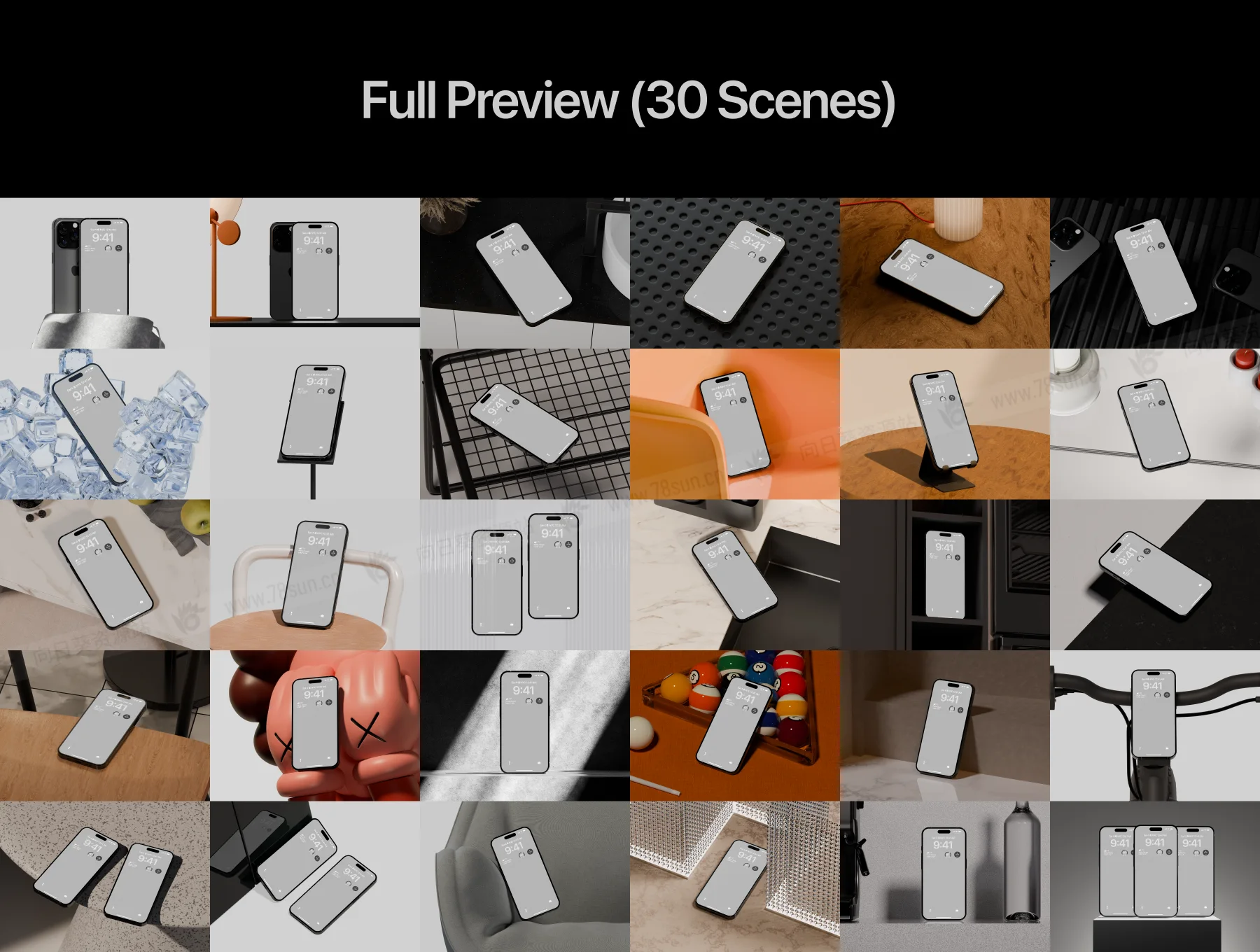隆重推出 iPhone 16 Pro 模型套装 – 一系列高品质、设计精美的模型,让您的作品脱颖而出。借助完全可定制的 PSD,这些场景非常易于编辑,帮助您以风格和专业精神展示您的设计。