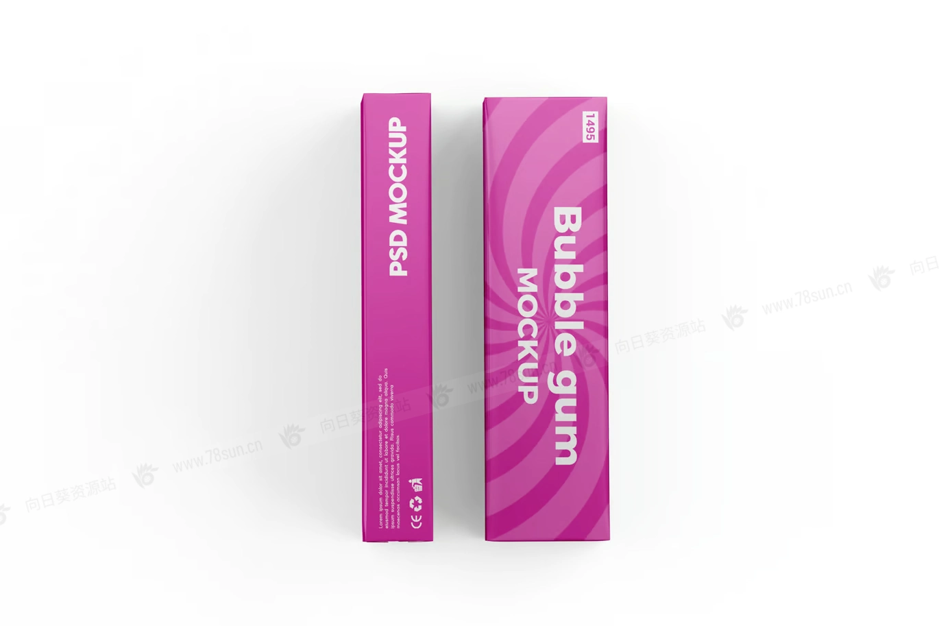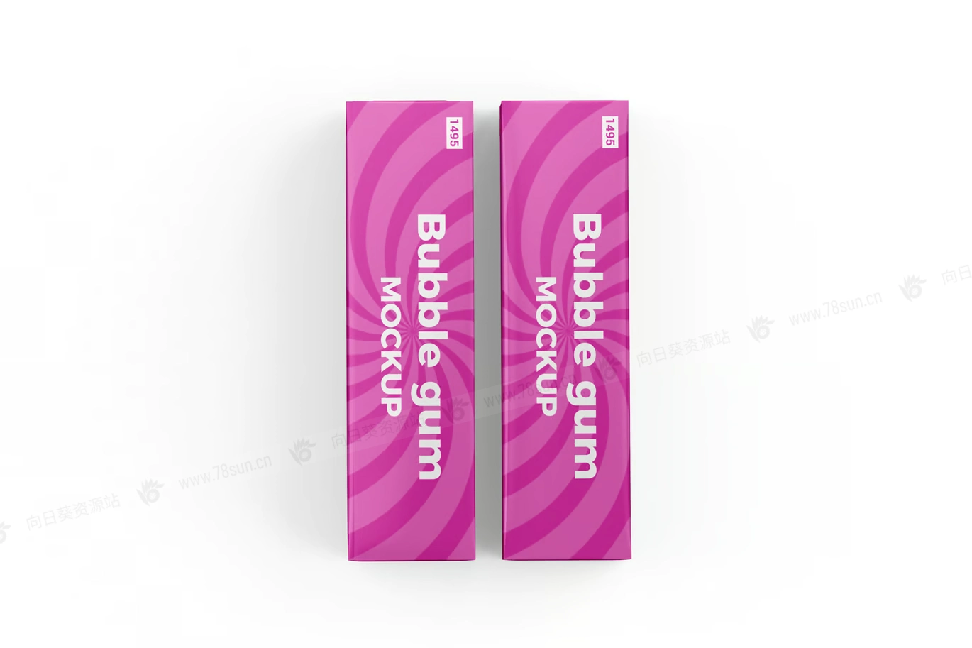 哑光口香糖包装纸盒品牌VI效果图展示智能贴图psd设计样机,该模型的高分辨率 3D 设计突出了从标签清晰度到包装纹理的每一个细节,使消费者能够轻松直观地看到您产品的质量和新鲜度。可编辑的格式允许将您的品牌无缝集成到每个口香糖棒、糖果棒或零食包装上,