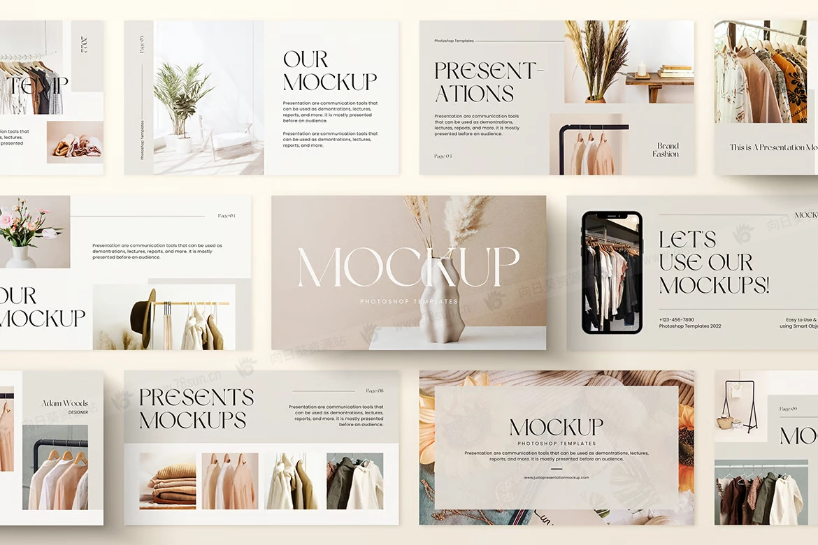 幻灯片演示文稿VI效果图展示智能贴图psd设计样机,
