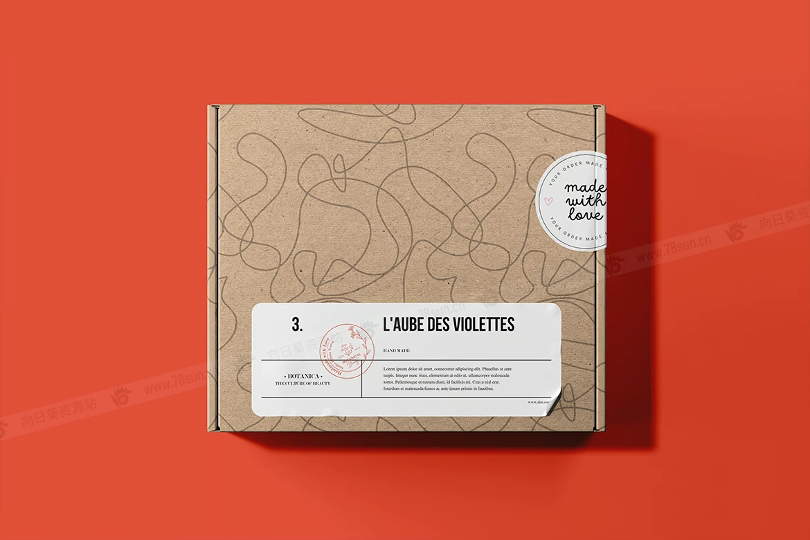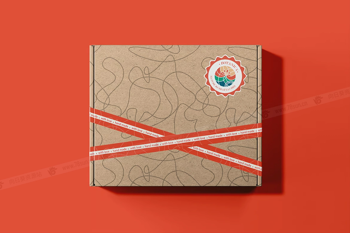 多形状封口标签贴纸牛皮纸盒品牌VI效果图展示智能贴图psd设计样机,