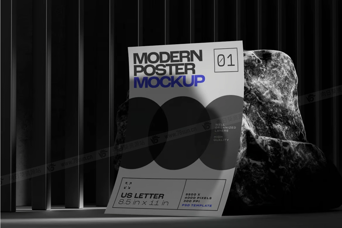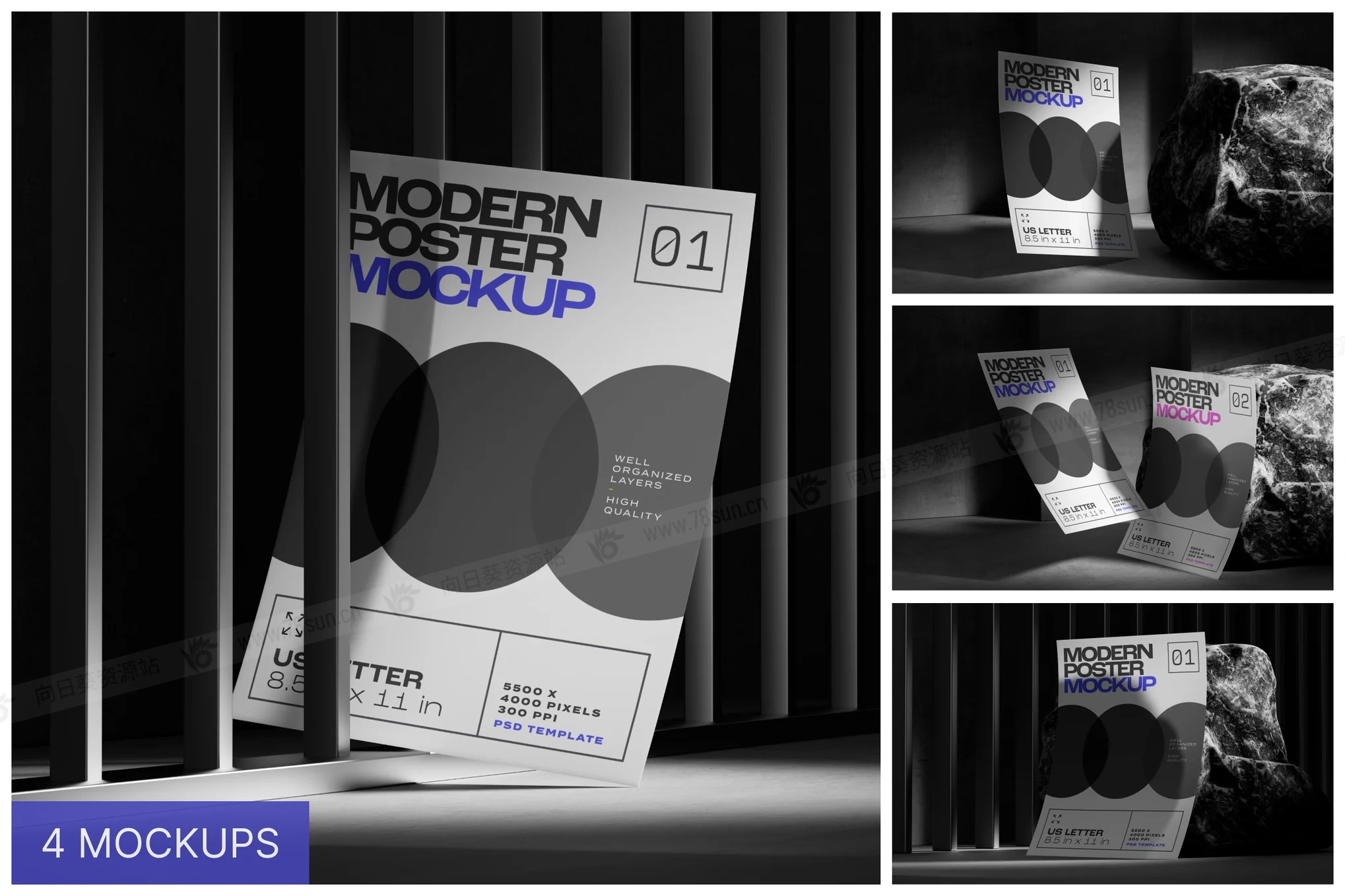 用这个高质量、逼真的美国信纸尺寸现代海报 PSD 模型专业地展示你的设计项目。这个模型模板设计精确且注重细节,提供干净、现代的外观,完美地突出您的工作。