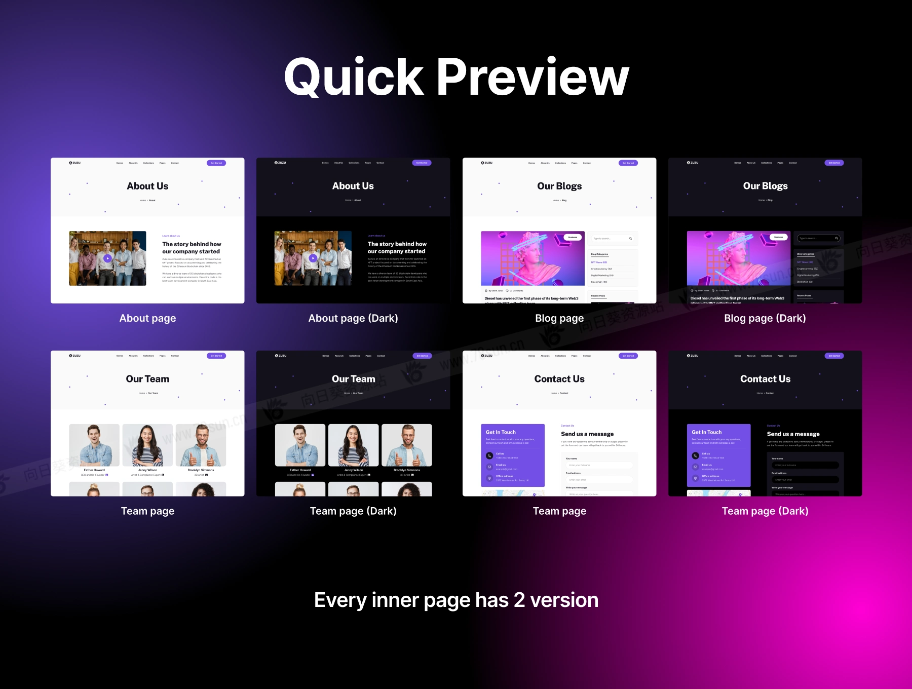 一个用于收藏品、加密、NFT、加密卡、区块链等的 NFT 模板网站。它时尚、响应迅速且易于定制。该模板经过 SEO 优化,易于定制,并包含易于阅读、易于理解的源代码,此模板提供各种个性化选项,帮助您在网站上提供所需的外观。它非常易于导航并适合各种屏幕尺寸
