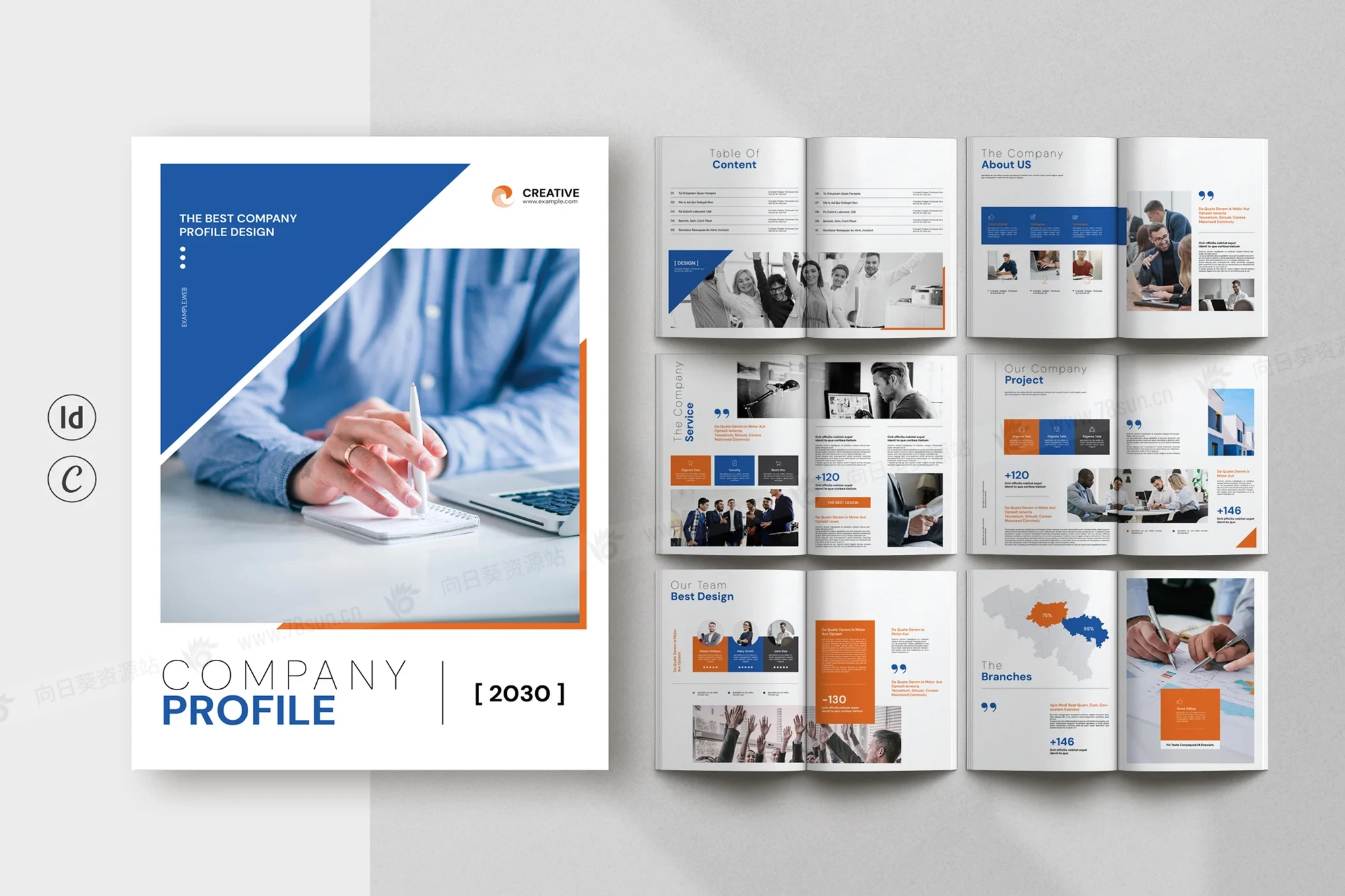 公司简介小册子杂志宣传册画册indd设计模板,添加您的徽标和图像并编辑您的品牌颜色和排版,