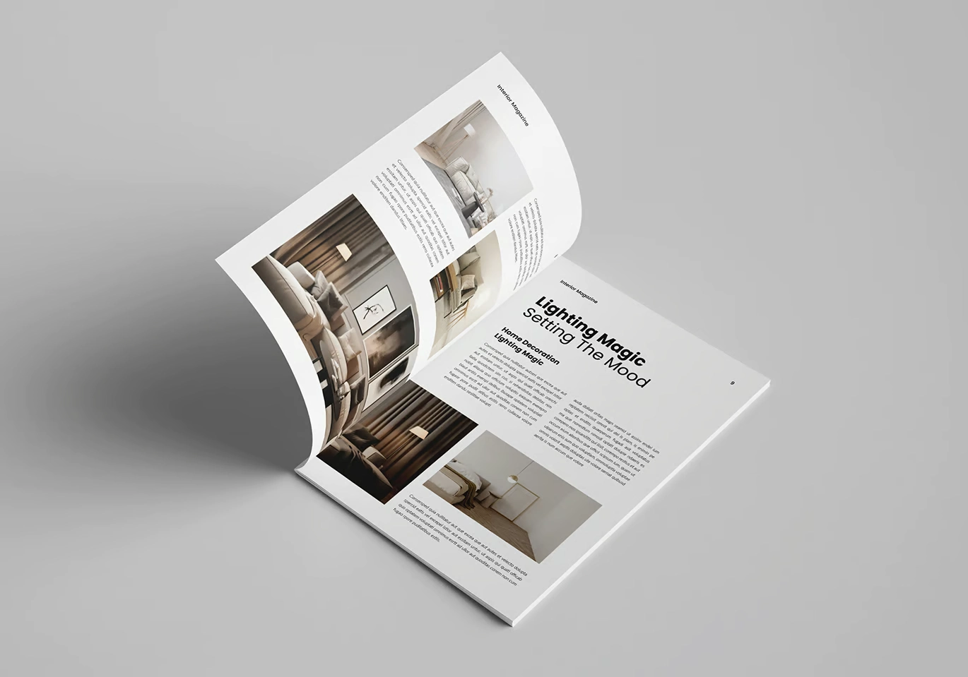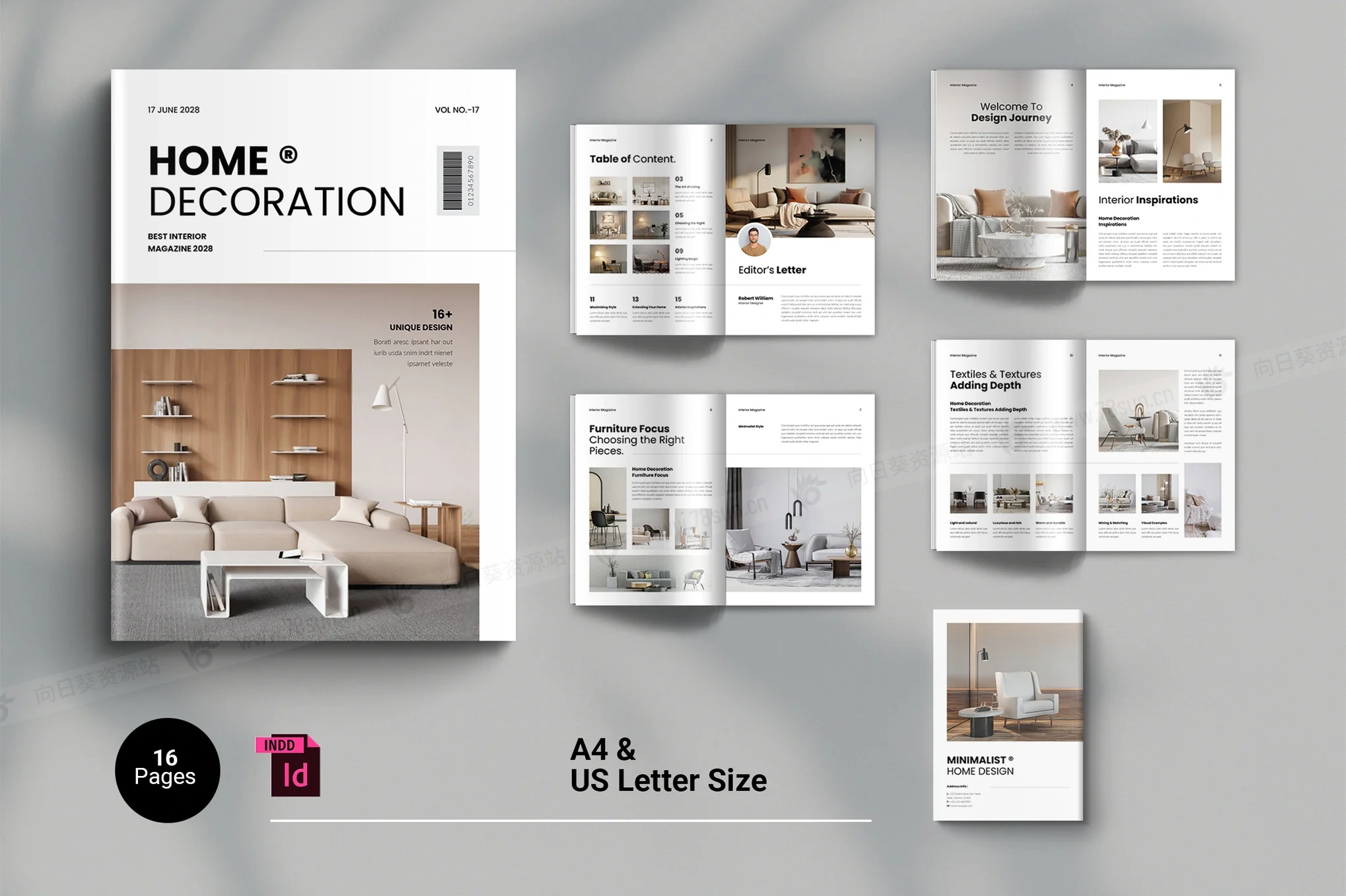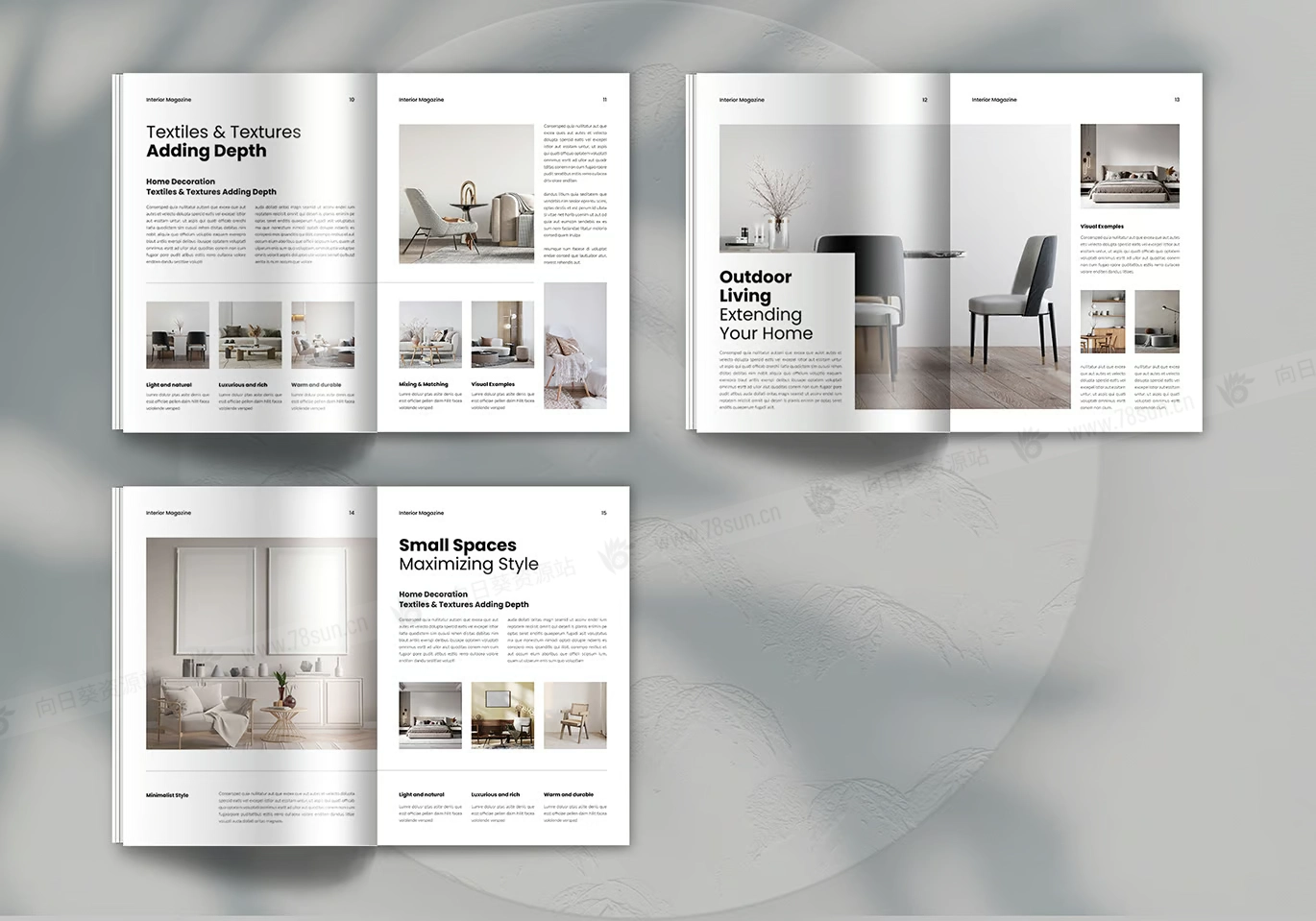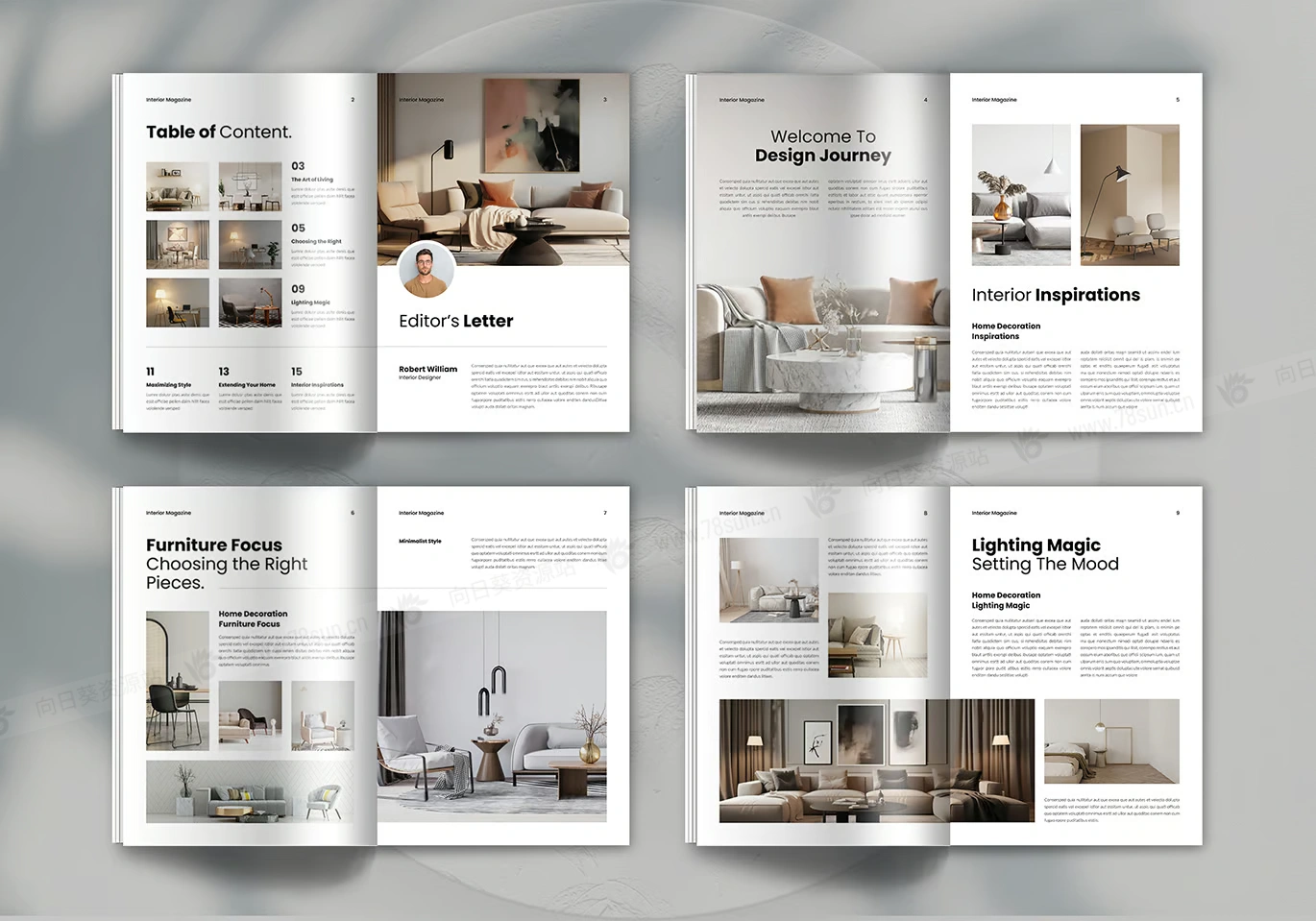 室内设计家具小册子杂志宣传册画册indd设计模板。这种布局适合任何项目目的,非常易于使用和定制。很容易自定义它并用您自己的颜色替换徽标和品牌颜色,(它有 A4 和美国信纸两种尺寸可供选择)