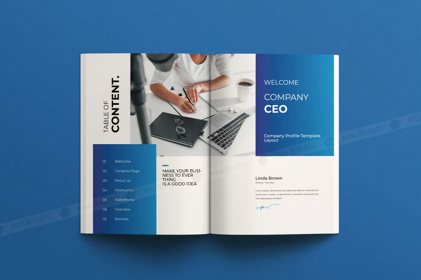 公司简介小册子杂志宣传册画册indd设计模板,添加您的徽标和图像,并编辑您的品牌颜色和排版