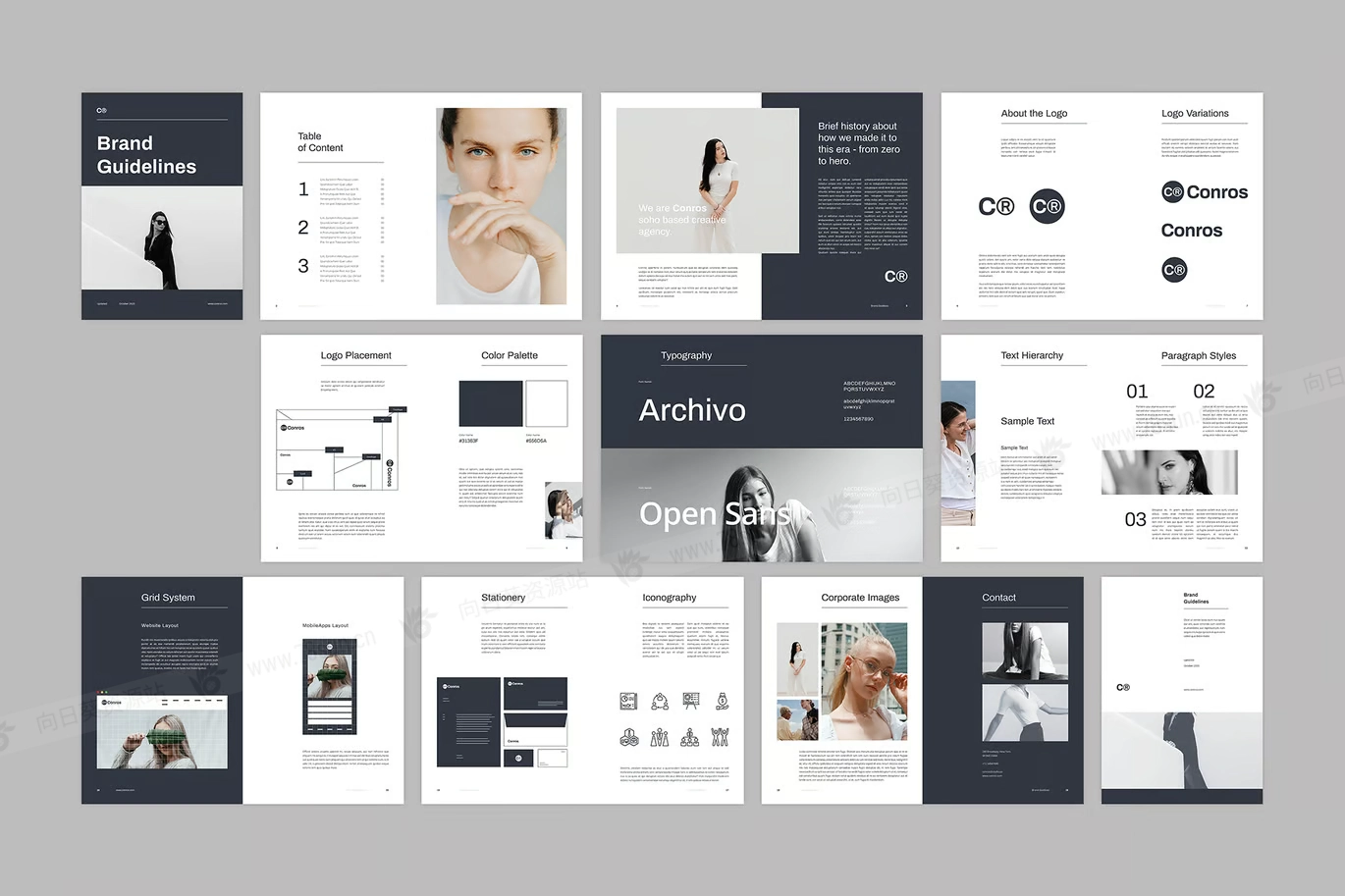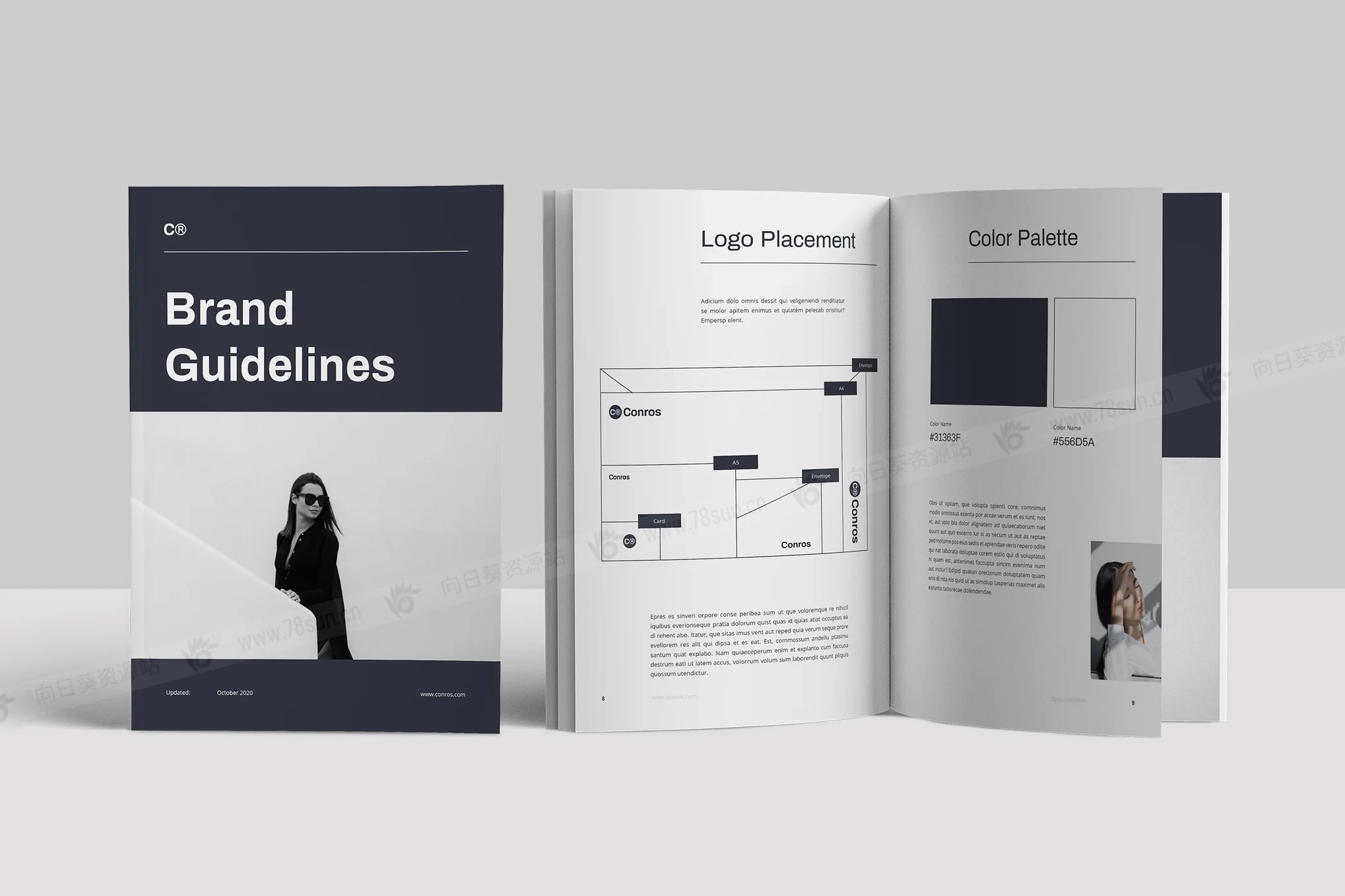 品牌指南小册子杂志宣传册画册indd设计模板,带有 20 页 Indesign 文档/模板的编辑布局模板,采用 A4 (297×210mm) 和美国 Letter (8.5×11“) 设计。该模板专为那些希望以时尚优雅的方式呈现图像以及信息图表和文本的人而设计。