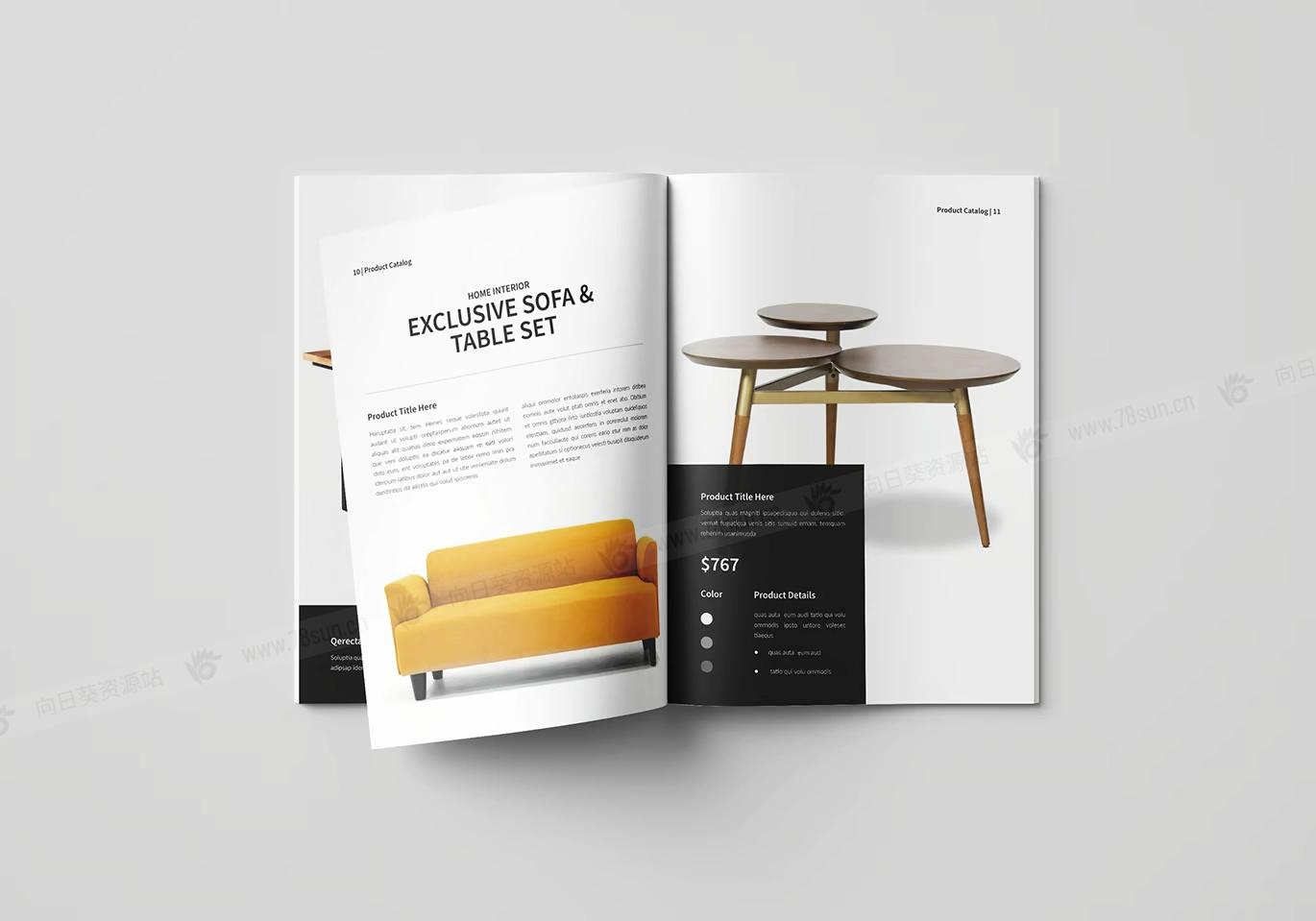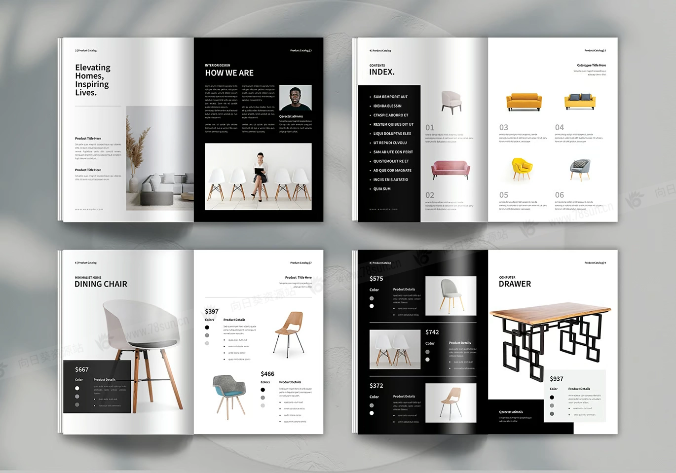 室内设计家具家居小册子杂志宣传册画册indd设计模板。这种布局适合任何项目目的,非常易于使用和定制。很容易自定义它并用您自己的颜色替换徽标和品牌颜色,(它有 A4 和美国信纸两种尺寸可供选择)