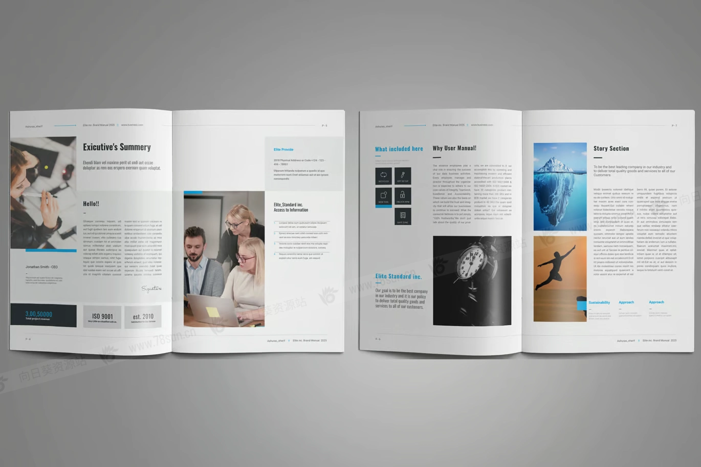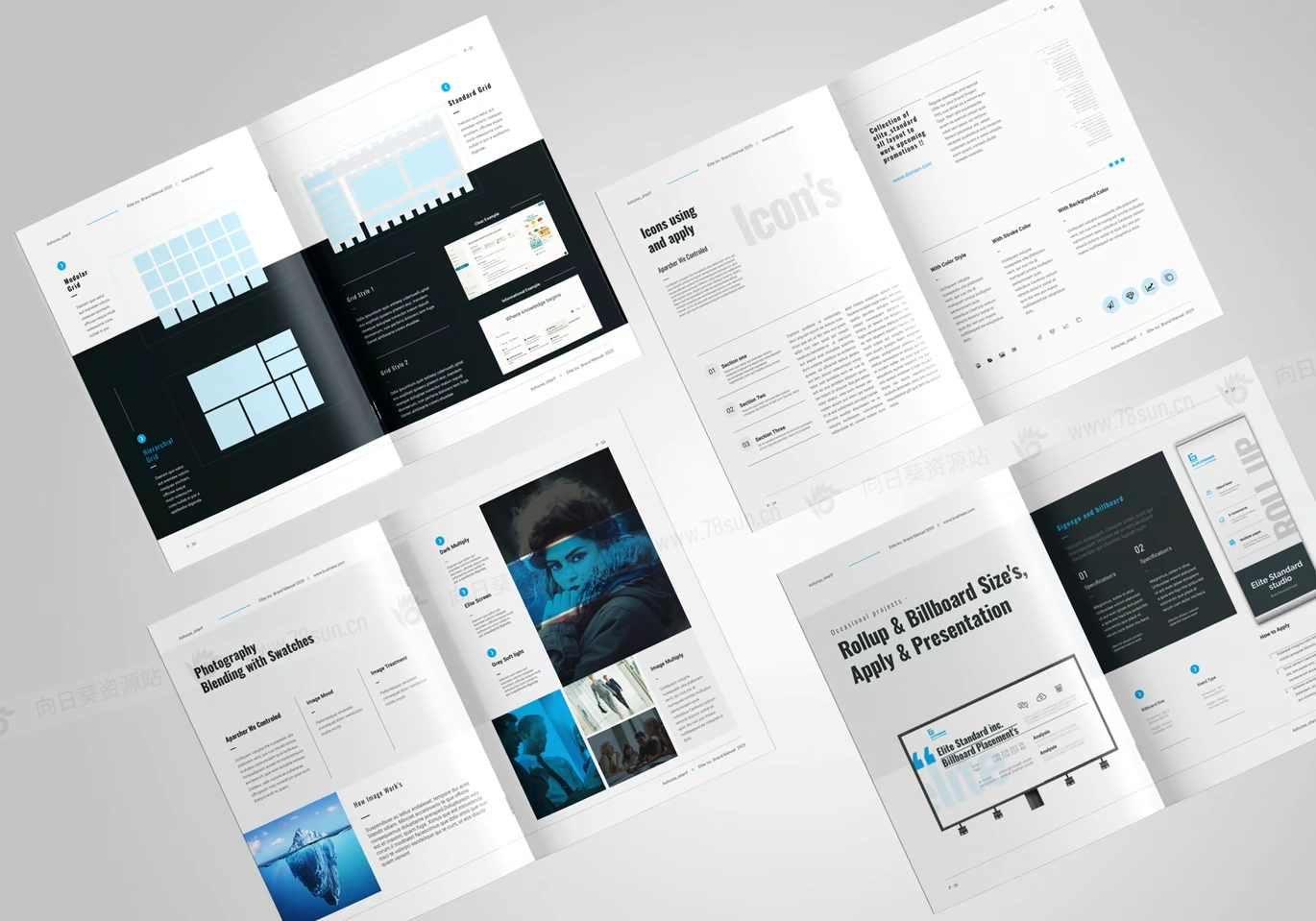 品牌指南小册子杂志宣传册画册indd设计模板。具有可识别形状的可见色板,以及裁剪的照片占位符。它具有您期望的专业宣传册模板提供的所有功能,从占位符到文本样式、可自定义的信息图表和易于编辑的母版页。添加了帮助 PDF 指南以更改颜色、文本和图像。