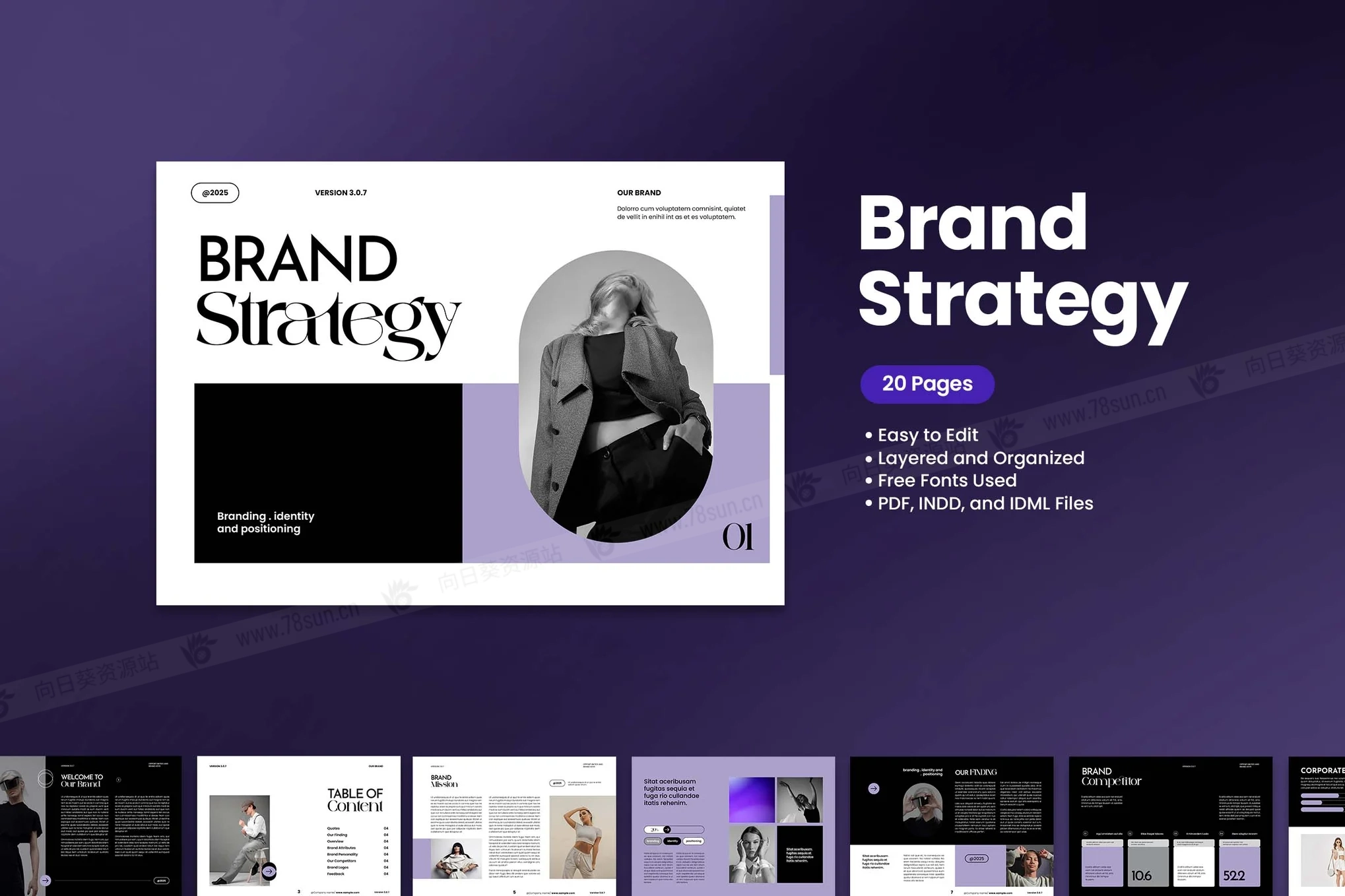 时尚品牌指南商务小册子杂志宣传册画册indd pdf设计模板,包含 20 个完全可定制的页面,该模板通过 Swatches 选项在所有页面上提供简单的颜色自定义,让您只需单击一下即可更改颜色。从字体到形状,每个元素都可以轻松定制,确保无忧体验。模板已准备好打印,可确保从自定义到最终打印的无缝过渡。