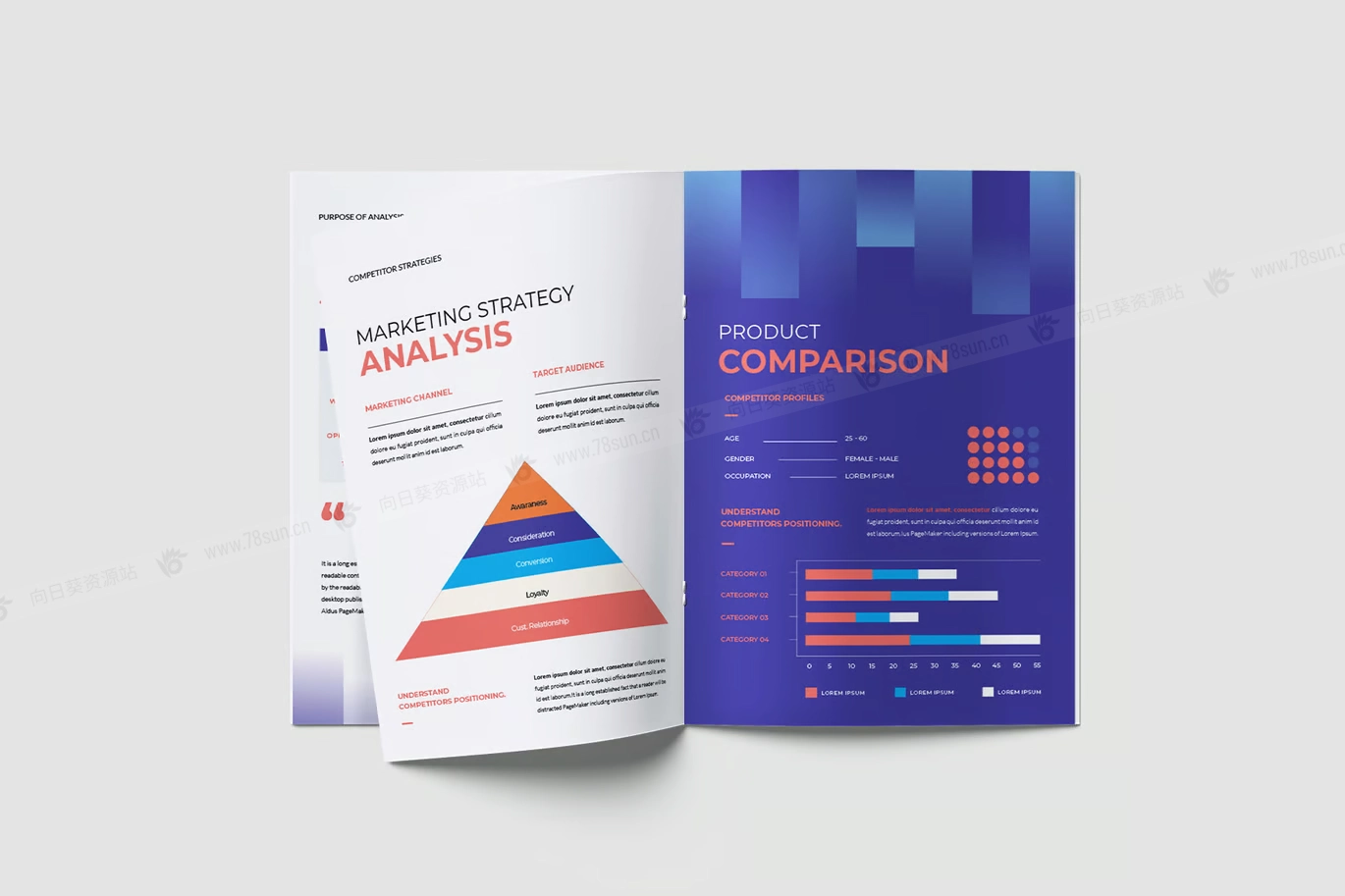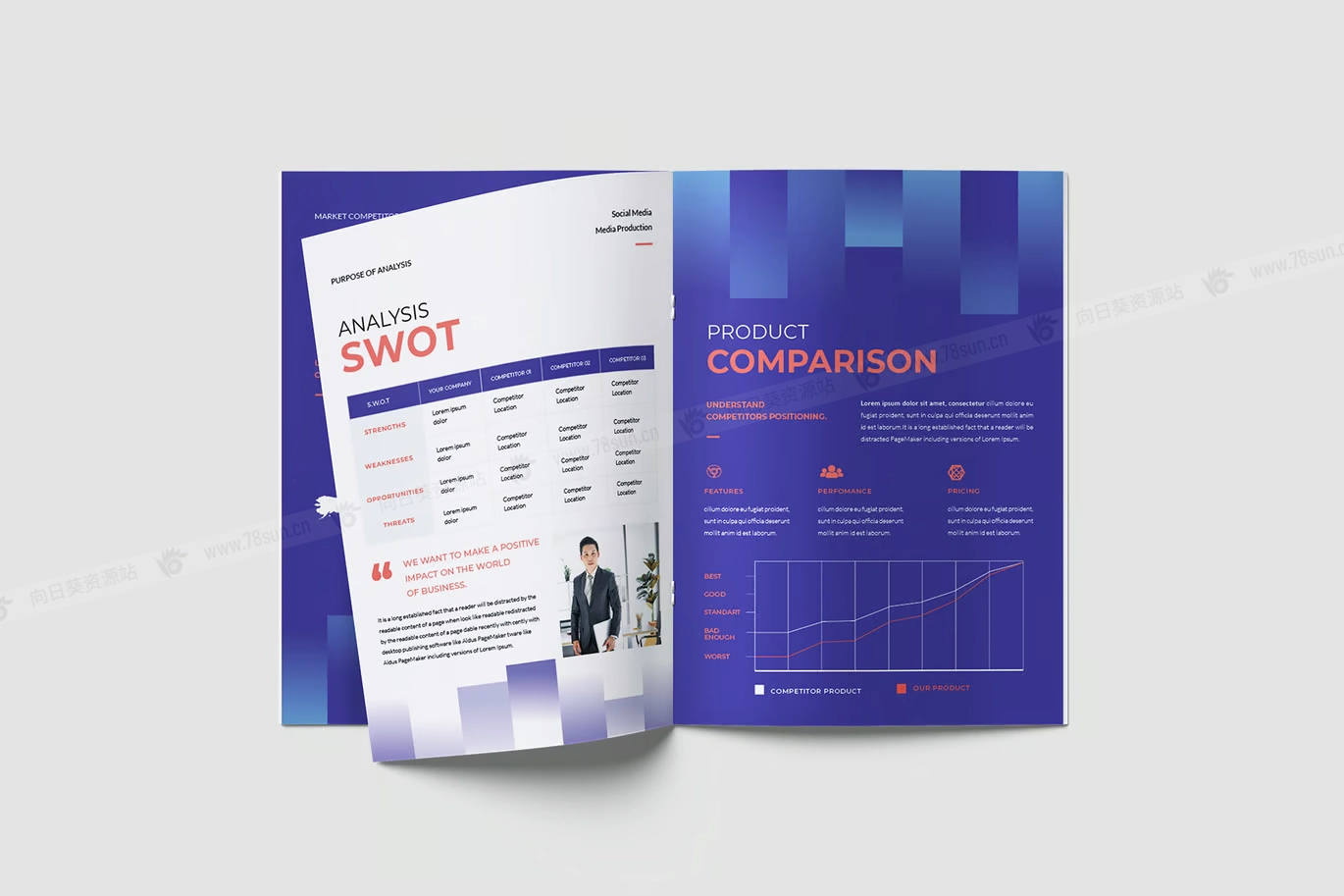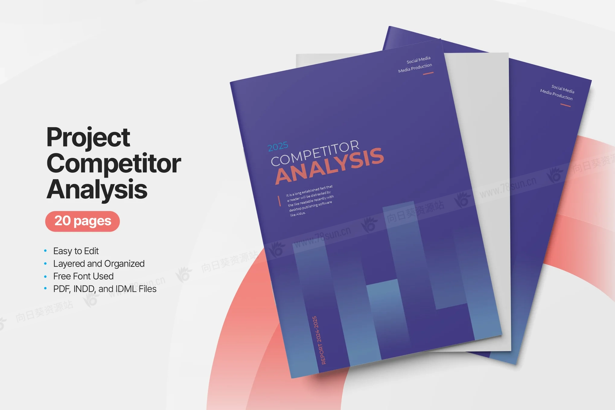 现代项目竞争对手分析宣传册打印模板,此模板包含 20 张可打印的 A4 页面,具有不同的布局,可满足您的项目要求。