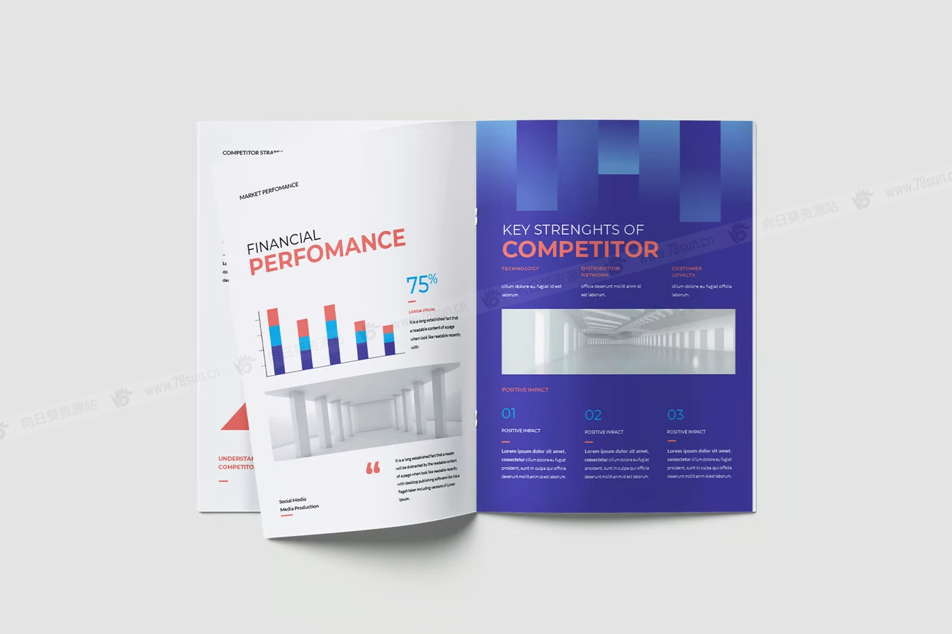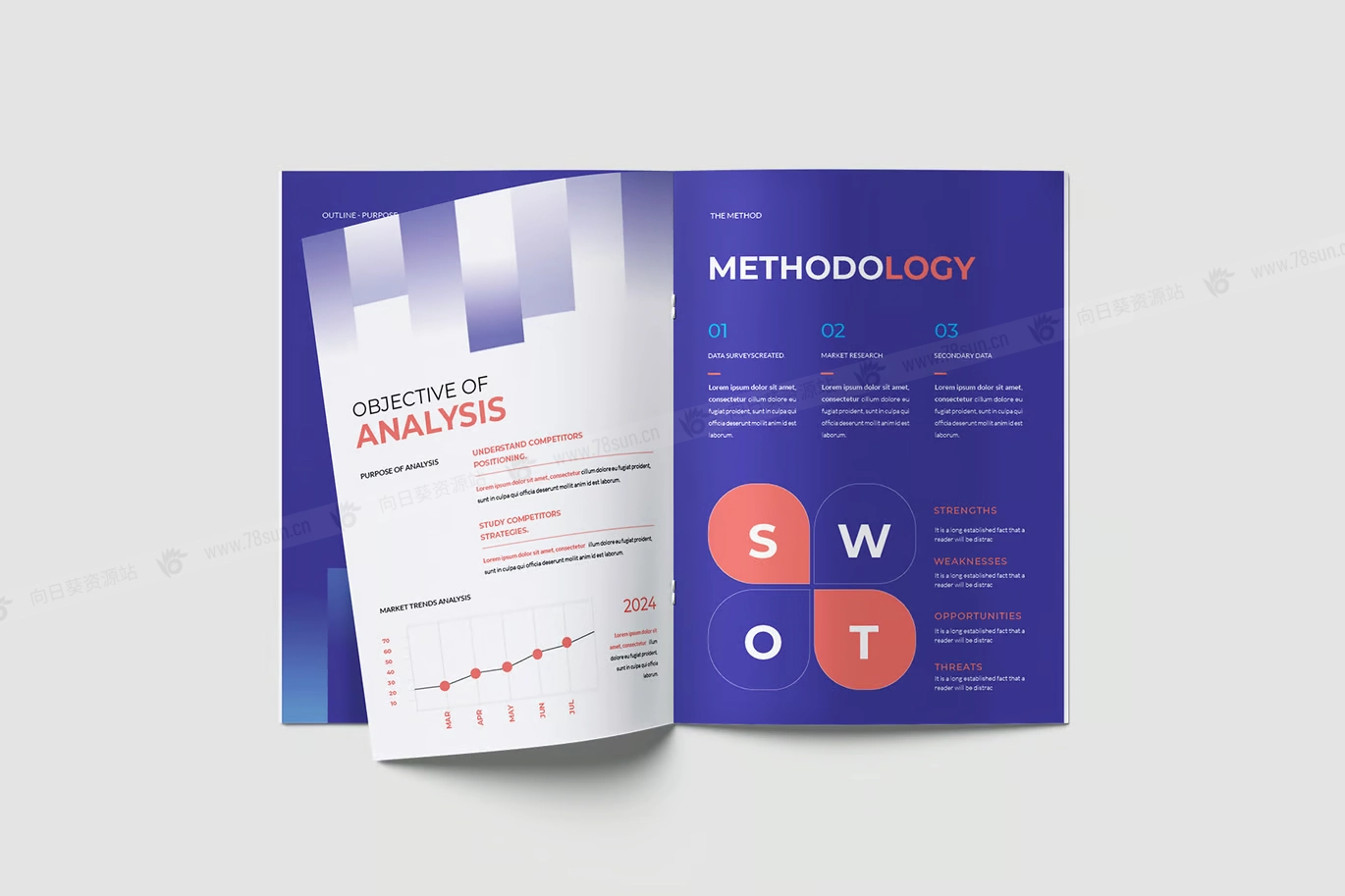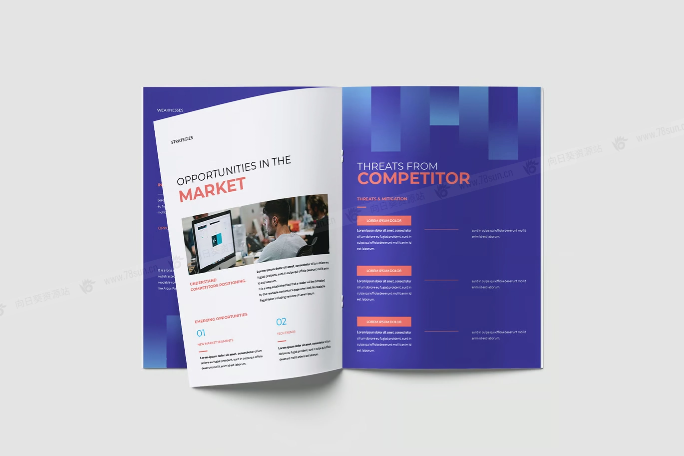 现代项目竞争对手分析宣传册打印模板,此模板包含 20 张可打印的 A4 页面,具有不同的布局,可满足您的项目要求。