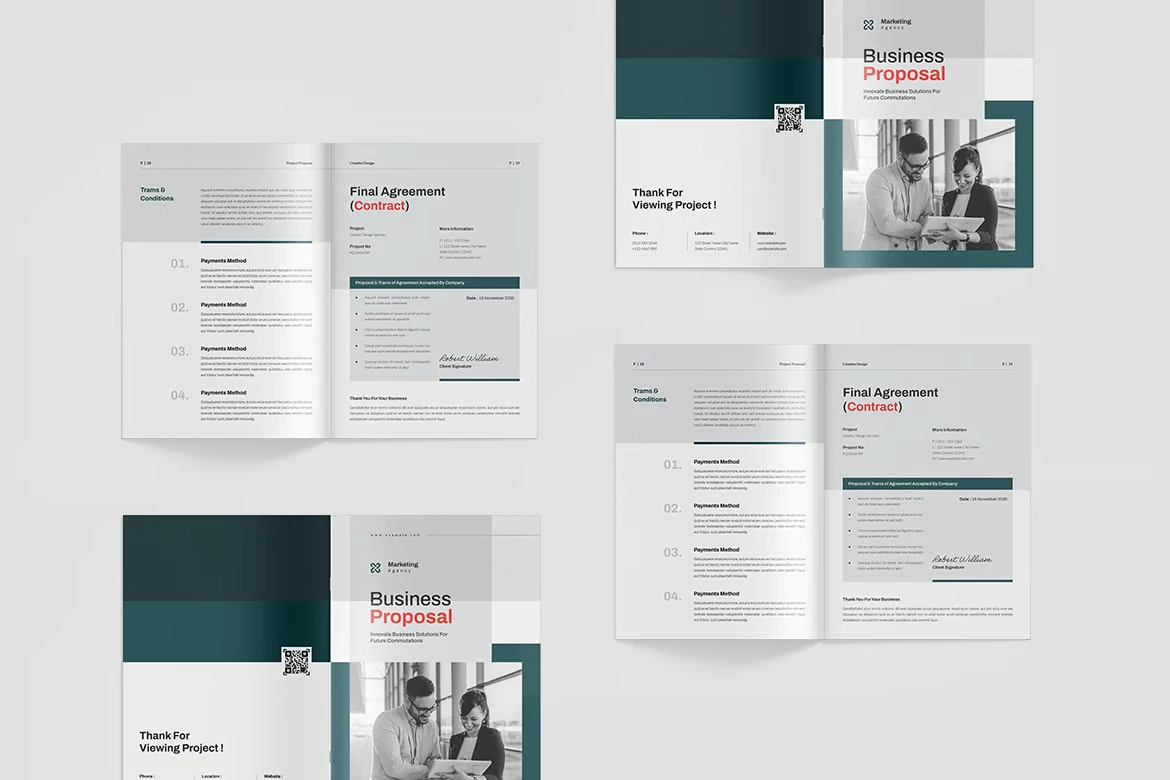 公司简介项目提案小册子杂志宣传册画册indd docx pdf设计模板,具有简洁的 20 页布局,每个页面都以空白和内容的平衡组合为特色,使用精心挑选的排版,该模板提供 A4 和美国信纸大小,易于以 PDF、Word 和 InDesign 格式进行自定义。